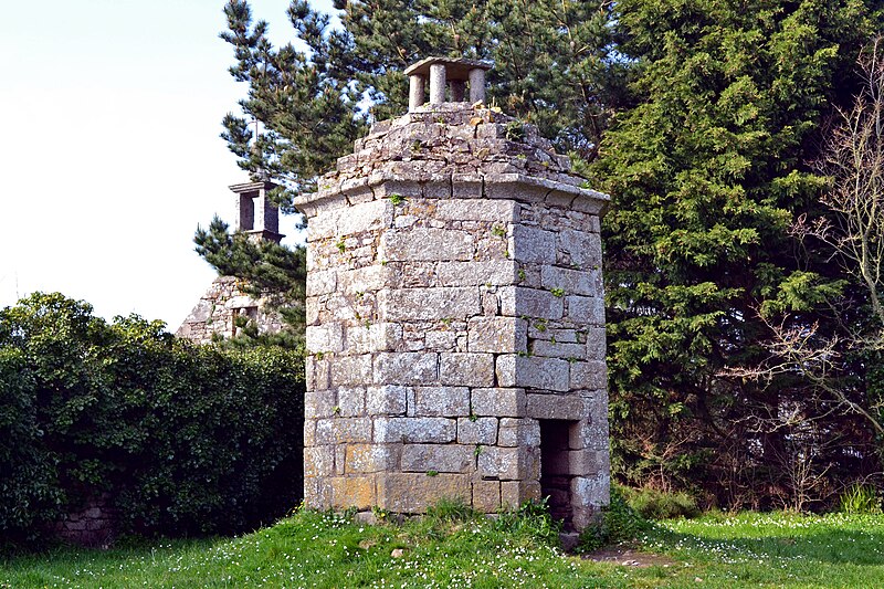 Un chemin côtier sépare la chapelle, le colombier et leurs enclos des habitations du lieu-dit Kerigou, notamment du logis du manoir. Il ne subsiste du manoir qu’un corps de logis en équerre, très modifié ; il appartenait à la fin du XVIIe siècle aux Coetlosquet, dont le blason est sculpté à côté de la statue sur la façade ouest de la chapelle. La chapelle, édifiée dans la seconde moitié du XVIIe siècle et d’abord dédiée à Saint-Jean, prend le vocable de Saint-Charles-Borromée en 1703. Le lambris de couvrement, ajouté au XIXe siècle, présente un décor peint en médaillons portant l’inscription « ANNA-MARIA IHS 10 SEP ». Le colombier, d’une exceptionnelle originalité par ses dimensions réduites et sa forme octogonale, complète l’ensemble.