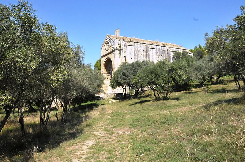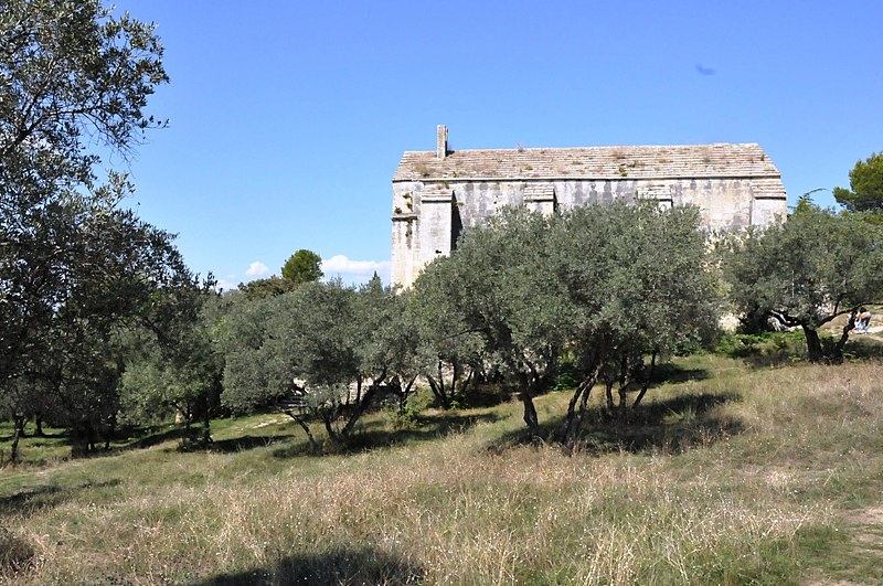 Un cippe funéraire trouvé dans l’église atteste la présence, à l’époque impériale, d’une activité de navigation et de transbordement : Julia Nice y dédie la mémoire de Marcus Frontonius Euporus, qui fut sévir augustal de la colonie Julia Augusta, naviculaire marin à Arles, curateur et patron des nautes de la Durance et des utriculaires d’Ernaginum, ces derniers assurant le transport des marchandises sur des radeaux soutenus par des outres gonflées. Le franchissement d’une zone marécageuse voisine nécessitait les services de ces nautes et utriculaires, qui permettaient la circulation des marchandises venues des Alpes sur la Durance et le Rhône. Les fouilles autour de la chapelle ont mis au jour des fondations d’habitations et un cimetière paléochrétien, témoignant de l’importance de l’agglomération antique et de la continuité des activités au-delà des invasions.