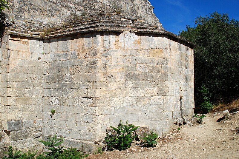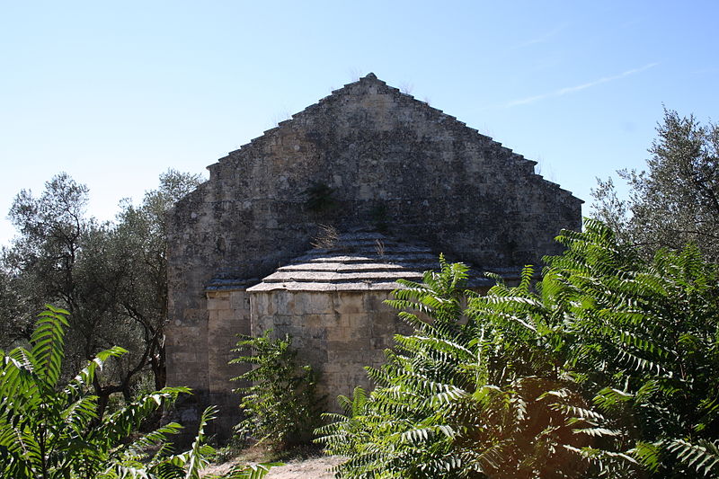 Le chevet est pentagonal, sobre et non décoré, recouvert de dalles calcaires. À l’intérieur, la lumière et la richesse du portail laissent place à la simplicité : une nef unique, rectangulaire, divisée en trois travées voûtées en berceau et séparées par des arcs doubleaux à double ressaut appuyés sur des piédroits qui descendent jusqu’au sol. Les murs gouttereaux sont animés par des arcatures aveugles en plein cintre ; l’abside est semi-circulaire à l’intérieur, à pans coupés à l’extérieur, et couverte d’un cul-de-four.