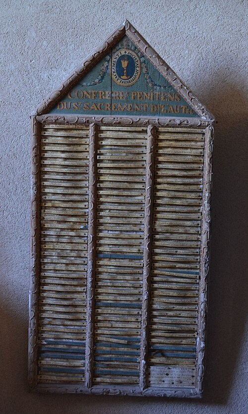 Deux œuvres du XVIIe siècle, L'Éducation de la Vierge (en présence de sainte Marthe, sainte Madeleine et d'un donateur) et La Déploration du Christ, ont été volées en 1979. Par ailleurs, la Descente de croix II, toile du XVIIe siècle inspirée de Rogier van der Weyden et copie d'une œuvre sur bois du XVe siècle, serait liée à un panneau ancien conservé à la mairie.