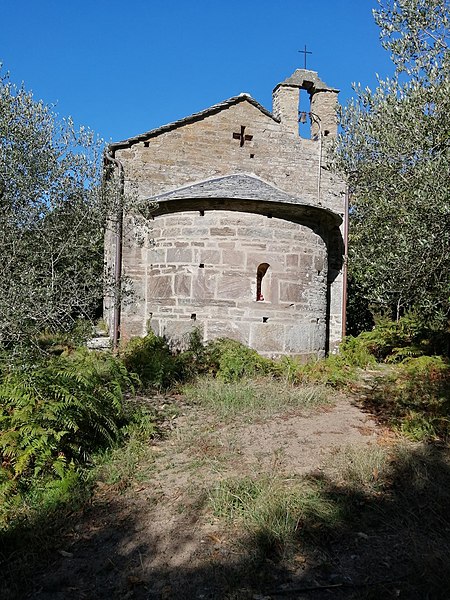 La chapelle Saint-Georges, datée du milieu du Moyen Âge, présente une nef couverte d'une charpente et d'une toiture en teghie. Les murs, en appareil de schiste, alternent des assises larges et minces. La porte occidentale conserve des piedroits monolithes et un large linteau rectangulaire dont la partie inférieure est évidée en plein cintre, simulant un tympan. Le fronton est orné d'une croix ajourée. Le mur oriental est surmonté d'un petit clocheton à arcade, construit postérieurement. La chapelle a été partiellement détruite au XVe siècle puis remise en état au cours du XVIe siècle.