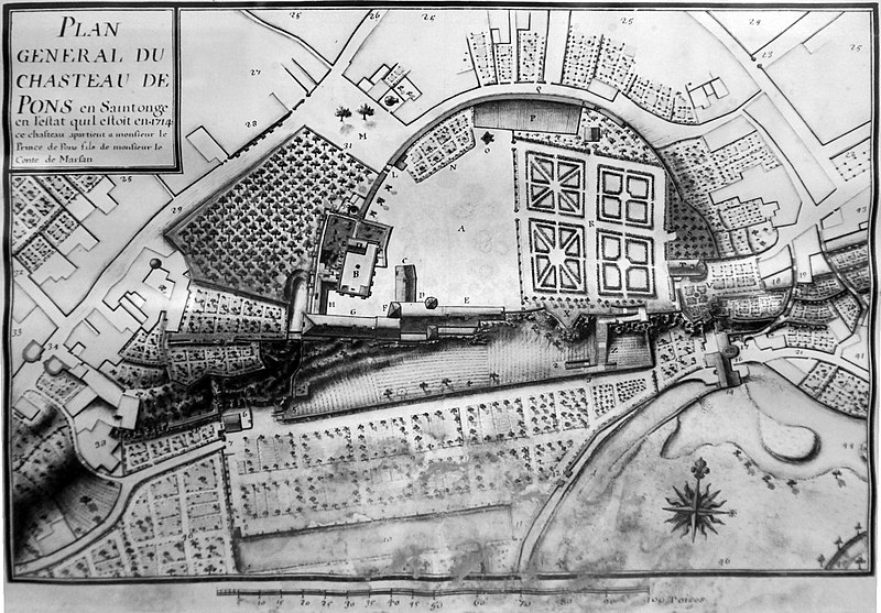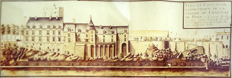 La chapelle Saint-Gilles, à Pons (Charente-Maritime), paraît liée au château et formait l'entrée de celui-ci. Le porche présente un premier arc composé de trois rangs de claveaux ornés, soutenu par des colonnes trapues aux chapiteaux sculptés, qui épaulent un arc-boutant venant buter contre un second arc d'architecture plus ancienne. Derrière cet ensemble, un troisième arc repose sur deux colonnes romaines monolithes porteuses d'inscriptions ; cette archivolte d'origine romaine a été plaquée sur l'édifice du XIIe siècle. Installée au cœur de la ville-haute, à l'est du château médiéval, la chapelle surmonte un passage voûté dont le porche médiéval a été aménagé au XIIe siècle sous le seigneur Geoffroy III, lors de l'allongement du chevet qui la coiffait ; ce porche correspond à l'entrée primitive du château. Sous le passage voûté se trouvent deux bornes milliaires gallo-romaines rappelant que la voie romaine reliant Mediolanum Santonum à Burdigala traversait Pons. L'ancien sanctuaire roman, établi sur de lourds contreforts, est mentionné dès 1067 sous les vocables « Notre-Dame du Château » puis « Notre-Dame-Marie ». Reprise au XIIe siècle, la chapelle présente un plan rectangulaire divisé en deux travées ; ses murs épais sont percés de baies en plein cintre et renforcés par des contreforts trapus, et le chevet est éclairé par un simple oculus. Désaffectée à la Révolution française, elle a été utilisée, à la fin du XXe siècle, comme musée archéologique. La façade d'une maison Renaissance, anciennement située rue Vieille-Prison, a été remontée dans le jardin à côté du porche de la chapelle ; cette façade a été inscrite aux monuments historiques en 1925. Une galerie de photos présente l'entrée sur la place, la façade sud à deux niveaux, le détail du porche et la salle haute utilisée comme musée archéologique. Parmi les sources figure l'ouvrage de F. Savin, Haute Saintonge : Promenades romanes (2007).