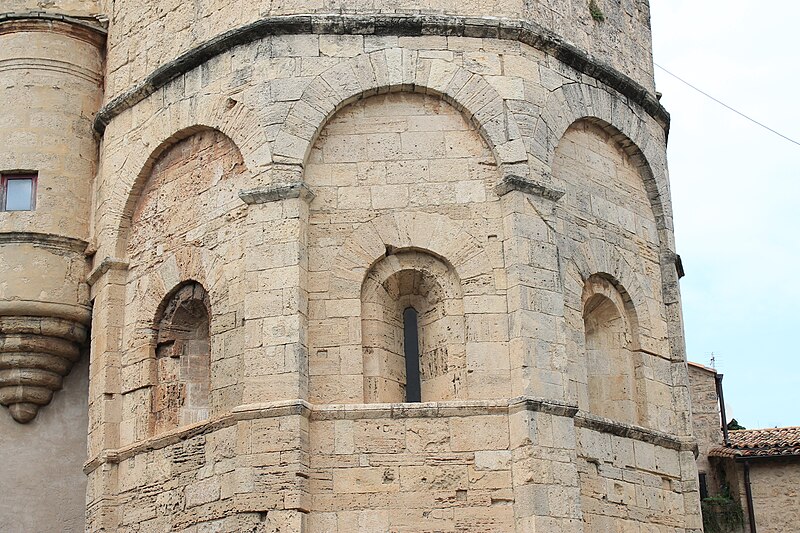 L'église Saint-Hippolyte, dite aussi chapelle castrale, est un édifice roman fortifié situé à Loupian, dans l'Hérault (Occitanie). Le monument est essentiellement d'époque romane, à l'exception d'une partie du campanile gauche refaite au XIVe ou XVe siècle et d'un crénelage aménagé autour de l'abside. L'édifice se compose d'une nef unique de trois travées voûtées en berceau, renforcées par des arcs doubleaux enchâssés entre deux corps de bâtiments. La lumière n'entre que par les trois baies percées dans l'abside polygonale, voûtée en cul-de-four. La façade conserve des consoles saillantes de machicoulis qui témoignent de la protection de la porte d'entrée et de la fonction défensive de l'édifice. Une influence poitevine apparaît dans les claveaux découpés en lobes saillants de l'archivolte et dans les nervures toriques qui renforcent le cul-de-four. Les tailloirs de la nef sont ornés d'entrelacs et deux colonnes jumelles de l'arc triomphal portent des têtes de loup. Une tribune en bois, établie sur la première travée, donne accès au couronnement par un escalier pratiqué dans l'épaisseur du mur dès l'époque romane ; l'accès avait à l'origine recours à une échelle mobile. Loupian est cité à plusieurs reprises dans les cartulaires médiévaux. La chapelle Saint-Hippolyte a été construite au XIIe siècle et dépendait de l'abbaye de Psalmody. Au XIVe siècle, l'église a été intégrée au système de défense de la ville : elle fut surmontée d'une tour, les fortifications du chevet furent ajoutées et l'édifice devint la chapelle du château. La chapelle est classée au titre des monuments historiques depuis le 17 décembre 1923. Elle est bâtie en pierre de taille assemblée selon la technique dite opus monspeliensis. Le chevet pentagonal fortifié présente sur chacune de ses faces un arc de décharge soutenu par un pilastre et une fenêtre ; il est flanqué d'une échauguette et surmonté de créneaux partiellement détruits, séparés du mur par un ressaut. La façade occidentale, elle aussi flanquée d'une échauguette, offre un portail logé sous un puissant arc de décharge et surmonté d'un arc outrepassé encadrant un arc festonné. Cet arc, composé de quatre voussures outrepassées, repose sur des chapiteaux sculptés qui couronnaient des colonnes aujourd'hui disparues. L'arc outrepassé relève d'une filiation avec l'architecture wisigothique via la tradition préromane, tandis que l'arc festonné procède du polylobé omeyyade diffusé depuis Cordoue et introduit dans l'architecture romane par les voies de pèlerinage, la localité se situant au sud de la Via Tolosane. Pour approfondir, on peut consulter les études et guides cités dans la bibliographie ainsi que les notices des bases Mérimée, Clochers de France et de l'Observatoire du patrimoine religieux.