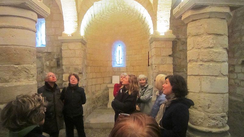 Implantée à l'angle de la rue Notre-Dame et de la rue du 8-Mai-1945, la chapelle est un bâtiment rectangulaire orienté et organisé en deux niveaux. La chapelle basse comporte trois vaisseaux de deux travées chacun, soit six travées au total, voûtées en arêtes et séparées par des arcs-doubleaux en plein cintre à arêtes vives. Ces arcs retombent sur deux piliers cylindriques isolés au centre et sur des piliers carrés engagés contre les murs latéraux ; tous les supports portent des tailloirs profilés composés d'une tablette et d'un cavet peu profond entre deux faibles ressauts. Le pilier isolé côté nord présente un chapiteau d'inspiration dorique et un appareillage en tambour, tandis que le pilier isolé côté sud porte un second tailloir octogonal, profilé d'une plate-bande et d'un chanfrein, et un appareillage moins régulier ; les deux sont pourvus de bases moulurées formées d'un tore, d'une scotie et d'un grand tore. Ni les voûtes ni les supports ne relèvent d'une facture strictement romane, et le chapiteau dorique évoque plutôt une période classique. Le vaisseau central s'achève par une absidiole en cul-de-four reconstituée lors des travaux des années 1980. L'éclairage provient de très petites fenêtres en plein cintre fortement évasées : deux à l'ouest, une au nord, une au sud et trois à l'est — dont une éclaire l'absidiole — les ébrasements se limitant aux piédroits et à l'archivolte ; la fenêtre du chevet du vaisseau nord est aujourd'hui rectangulaire. À l'extérieur, plusieurs baies présentent des linteaux monolithiques à claveaux simulés. La chapelle haute, moins remarquable, est accessible par un escalier extérieur côté nord et couverte d'un plafond de bois.