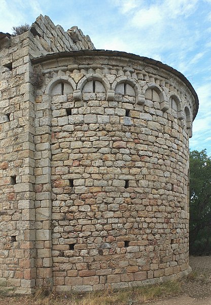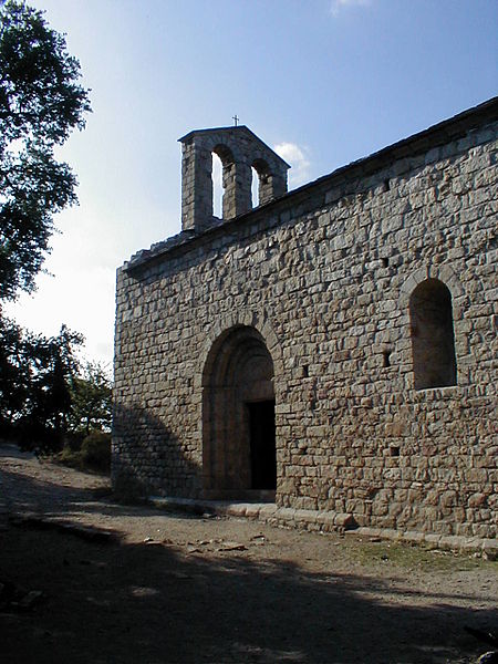 La chapelle Saint-Laurent-du-Mont, ou Sant Llorenç del Munt en catalan, est un sanctuaire roman situé sur le massif de la Massane au sud d'Argelès-sur-Mer, installé sur une petite élévation dominant la vallée du rec de l'Abat, à une altitude d'environ 200–300 mètres. Le lieu est mentionné dès 981 sous la forme Cella Sancti Laurentii et apparaît encore en 1278 comme Sancti Laurencii de Monte in Loco Rauaner ; ces mentions confirment la dépendance ancienne de l'édifice à l'abbaye de Saint-Génis-des-Fontaines, qui conserva la propriété jusqu'à la Révolution, lorsque le bien fut vendu comme bien national. L'église actuelle, de style roman, a été construite au XIIe siècle et consacrée par l'évêque d'Elne Artal III le 8 mai 1164. Elle semble n'avoir connu ni phases de construction multiples ni remaniements majeurs, ce qui en fait un exemple représentatif de l'architecture religieuse roussillonnaise du XIIe siècle. À l'origine tête d'une paroisse rurale dont le centre se trouvait dans la vallée du Ravaner (Sant Pere de la Cellera ou Sant Pere dels Forquets), l'édifice perdit son statut paroissial vers le XVIIe siècle mais continua d'être utilisé ponctuellement, notamment le 10 août, jour de sa fête patronale. Restaurée dans les années 1990 par des bénévoles d'Argelès, la chapelle a été classée au titre des Monuments historiques en 1994. L'édifice se compose d'une nef unique et d'un chevet semi-circulaire légèrement plus étroit que la nef ; sa longueur est de 21 mètres et la nef présente une largeur de 9 mètres. Le mur pignon occidental porte un clocher-arcade à trois piliers rectangulaires ; deux des arcades, probablement en plein cintre, ont disparu. L'accès se fait par une porte sur la façade sud, dotée d'un linteau en batière, d'un tympan en demi-lune et d'une voussure à trois rouleaux correspondant aux ressauts des piédroits. Le chevet est décoré d'une frise d'arcatures lombardes sur modillons, d'une rangée de dents d'engrenage et d'une corniche à gorge ; près du chevet, la toiture conserve des vestiges d'un ancien mur-clocher. L'édifice est construit en granit, vraisemblablement extrait localement ; l'intérieur présente une voûte en berceau continu légèrement brisée dont les trois premières assises sont en granit appareillé, le reste semblant en schiste. Deux banquettes superposées courent le long des murs gouttereaux et du mur de fond, et le chœur est voûté en cul-de-four. Quatre fenêtres en plein cintre éclairent l'édifice.