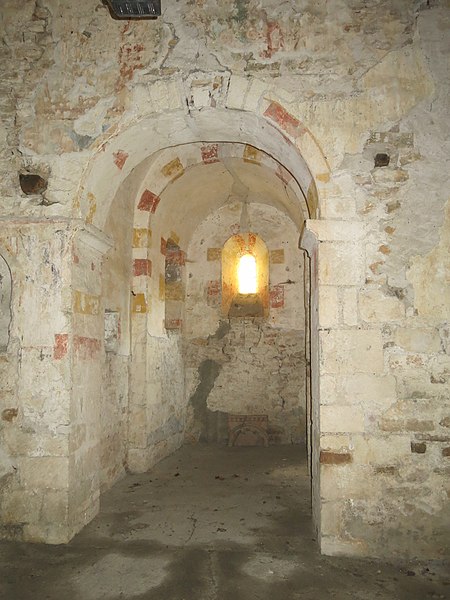 Des vestiges de peintures murales subsistent à l'intérieur, probablement liés au remaniement du XIIe siècle ; l'une d'elles dans la nef pourrait représenter la déposition de la croix. Des vues anciennes et des relevés montrent la chapelle à la fin du XIXe et au début du XXe siècle, des perspectives extérieures, le détail de l'appareillage en opus spicatum, la nef et le chœur.