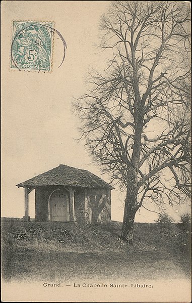 La chapelle se dresse sur l'emplacement traditionnel du tombeau de Sainte-Libaire. Le site, bordé par l'ancienne voie romaine de Grand à Soulosse, était occupé par un important édifice public gallo‑romain ; dès le Haut Moyen Âge il a accueilli une nécropole et peut‑être une chapelle cimetérale. La chapelle actuelle a été élevée au cours de la première moitié du XVe siècle en deux campagnes : d'abord l'abside à cinq pans, puis la nef unique de trois travées. D'importants restes de peintures murales subsistent, notamment dans le chœur. D'après des sources, un auvent sur poteaux, aujourd'hui détruit, a été dressé devant la façade occidentale entre 1766 et 1770, au moment d'importants travaux de restauration qui ont notamment entraîné la suppression des voûtes de la nef. D'après des sources, ces travaux ont été réalisés d'après des plans de Joseph Aubert, architecte à Bar‑sur‑Aube, et réceptionnés par Jean Louis Deklier‑Dellille, ingénieur des ponts et chaussées, inspecteur des bâtiments et usines des domaines du Roy.