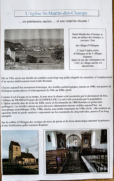 La chapelle Saint-Brice, située à Oltingue dans le Haut-Rhin, est inscrite au titre des monuments historiques depuis 2006. De plan de pèlerinage, elle présente une nef rectangulaire prolongée par un chevet à trois pans. L'entrée ouest est précédée d'un porche à poteaux de bois couvert d'un toit à croupes. Sur le flanc sud, un avant-corps abrite un autel extérieur. D'une construction probablement datée du milieu du XIVe siècle subsistent les maçonneries latérales de la nef, les contreforts et deux petites baies gothiques en arc brisé du mur sud. La chapelle est mentionnée avec certitude en 1361 et se situe, isolée, dans une clairière au nord-est du village. Des restaurations à la fin du XVIIe siècle puis au début du XVIIIe siècle ont entraîné l'ouverture de grandes baies dans la nef, la pose d'un clocheton et la refonte de la charpente. Elle a été partiellement reconstruite en 1669, vraisemblablement avec l'adjonction d'une chapelle sud, ce qui a conduit à la fermeture de deux baies gothiques et permis de les préserver. L'ancien campanile, daté de 1705, a été remplacé par l'édifice actuel en 1985. La chapelle fut autrefois un lieu de pèlerinage réputé : 55 ex-voto en fer découverts dans le grenier en 1910 sont conservés au musée archéologique de Strasbourg. À proximité, sur l'emplacement d'un ermitage attesté en 1567, se dresse une ferme en pans de bois de type archaïque, probablement du XVIIIe siècle, aujourd'hui transformée en ferme-auberge.