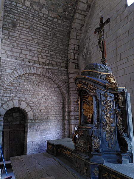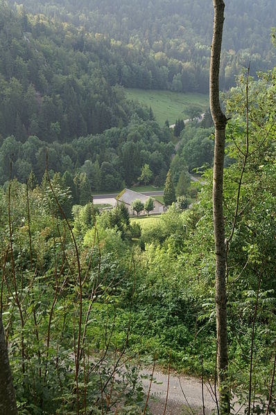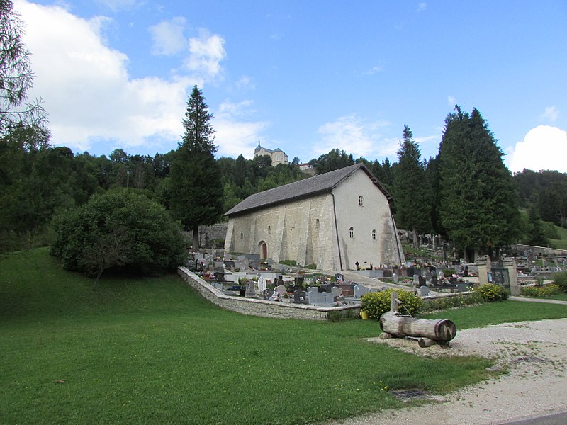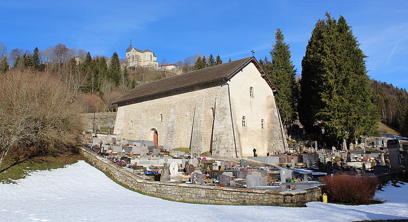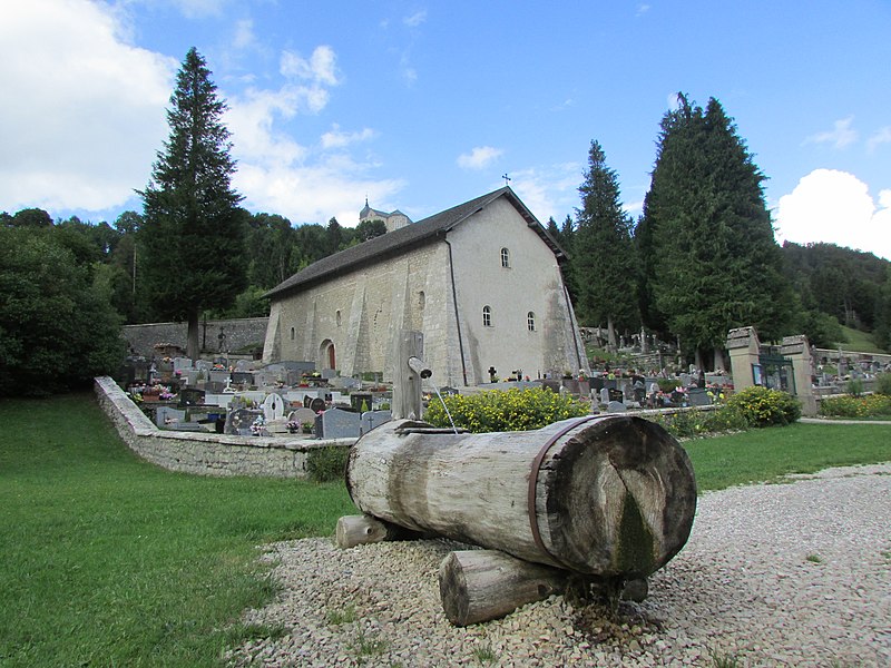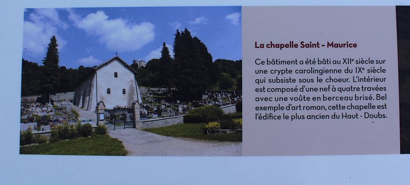Dominant l’enclos du cimetière et surplombée par l’église paroissiale Saint-Jean-Baptiste, la chapelle Saint-Maurice de Jougne est dédiée à Maurice d’Agaune. Elle rappelle l’existence d’un prieuré bâti par les bénédictins de l’abbaye de Saint-Maurice d’Agaune, fondée dans le Valais sur le lieu du martyre de saint Maurice, et entretenait des liens de confraternité avec les abbayes de Saint-Bénigne de Dijon et de Saint-Marcel de Chalon. Le prieuré formait une halte sur l’itinéraire monastique entre le Valais et la Bourgogne pour les moines franchissant le Jura par le col de Jougne ; les échanges portaient notamment sur quelques produits agricoles et le sel provenant des salines de Salins. Un document de 1199 mentionne un chapelain à Jougne et indique que l’église prieurale assurait alors le service paroissial avant la construction de l’église paroissiale en 1663. La datation de l’édifice est discutée : la crypte a été attribuée au IXe siècle tandis que certains auteurs, dont Géraldine Mélot, plaident pour une construction de l’ensemble avec crypte au milieu du XIIe siècle. Bâtie à flanc de coteau sur un axe nord-sud, la chapelle possédait à l’origine une abside à trois pans coupés, visible sur un plan de 1595 déposé au château d’Arlay, forme répandue en Franche-Comté au XIIe siècle. À la suite de glissements de terrain, l’abside a disparu et le pignon sud a été refermé par un mur percé de trois petites baies ; ces mouvements ont aussi conduit, au XIXe siècle, au renforcement des contreforts romans de la façade ouest et à la construction de contreforts sur la façade orientale, conférant à l’ensemble une silhouette trapue. L’intérieur présente une nef unique en quatre travées, y compris le chœur légèrement surélevé, et des chapiteaux sculptés portant des motifs de personnages ou de végétaux. La crypte romane, de dimensions modestes, a probablement été un lieu de culte dédié à saint Maurice ; ses reliques se trouvent aujourd’hui dans l’église paroissiale de Jougne. La chapelle est classée au titre des monuments historiques depuis le 30 avril 1930. Le cimetière attenant est mentionné au cadastre de 1839 et a été agrandi en 1866 sur des plans de l’architecte L. Girod, de Pontarlier ; il conserve quelques tombes anciennes ornées d’attributs professionnels, notamment ceux d’un ecclésiastique, d’un artilleur ou d’un franc-maçon. Le maître-autel, comprenant gradins et tabernacle, est classé au titre des objets monumentaux depuis le 23 octobre 1989. Située au pied du bourg, à mi-chemin du lieu-dit « le Moulin » et proche de la Jougnena, la chapelle Saint-Maurice reste l’un des exemples remarquables de l’architecture romane en Franche-Comté.