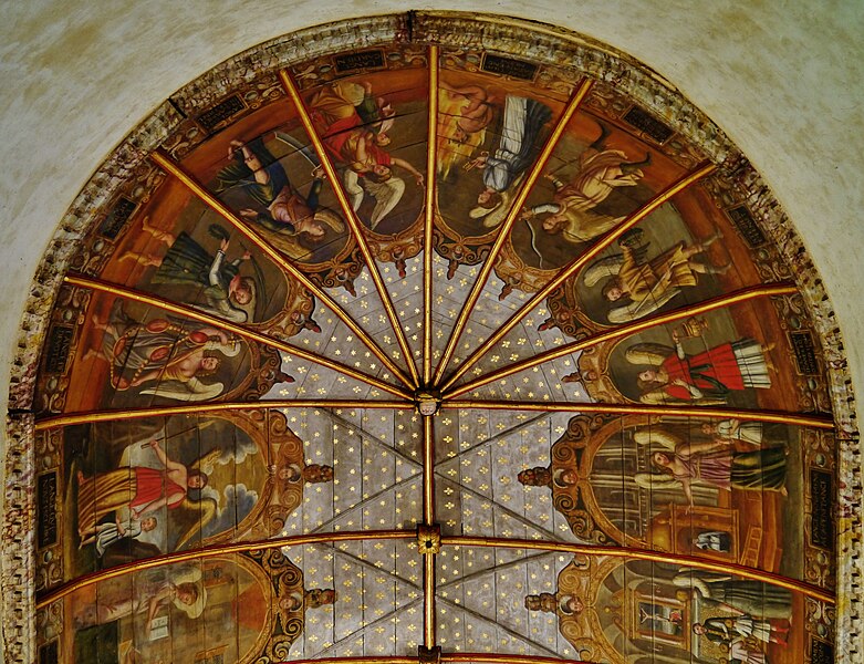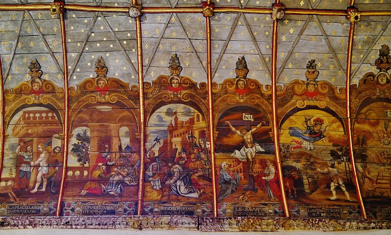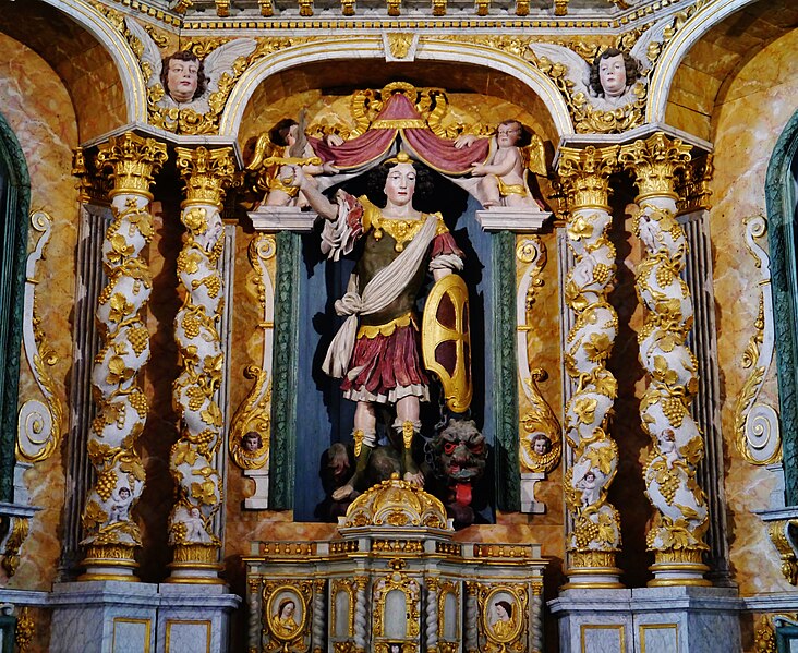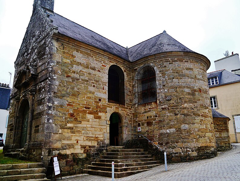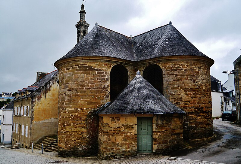La chapelle Saint-Michel se situe à Douarnenez (Finistère, Bretagne), place Saint-Michel, rue du Port-Rhu. L'édifice, commencé en 1663, est de plan en croix dont la tête et les branches se terminent en hémicycle. La façade ouest est percée d'une porte d'inspiration classique, encadrée par deux pilastres et surmontée d'un fronton brisé au centre d'un pignon qui porte un petit campanile de style classique. L'intérieur présente une voûte en lambris peints, décorée entre 1667 et 1675, et, à la croisée du transept, quatre blochets représentant des personnages du XVIIe siècle coiffés de perruques. Les culots du poinçon sont sculptés et alternent têtes et motifs ornementaux, et les sablières sont également sculptées. La première pierre fut posée le 12 août 1663 ; des dates portées indiquent que la construction a eu lieu en 1664 et 1665, et l'édifice a été élevé sur l'emplacement de la maison de Michel Le Nobletz. Une inscription porte : "MRE HIE PAILLART P RECT DE PLOUARRE MICHEL POULLAOUEC FABRIQUE 1664, MATTHIEU LOZEAC'H 1665." La chapelle est classée au titre des monuments historiques par arrêté du 19 juillet 1957.