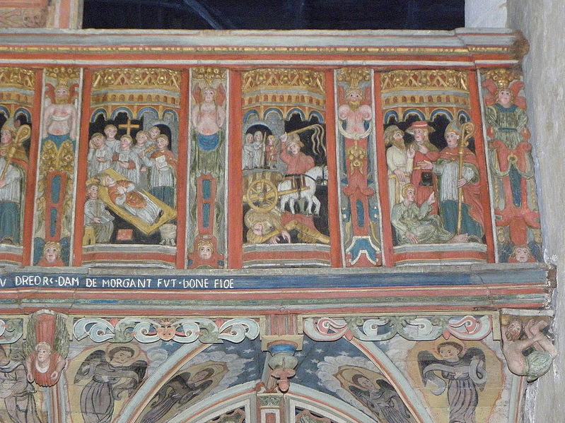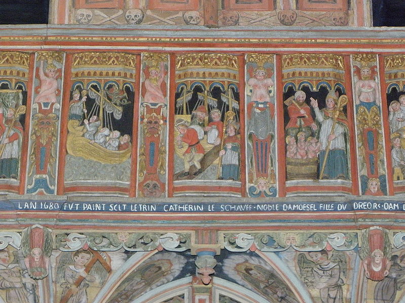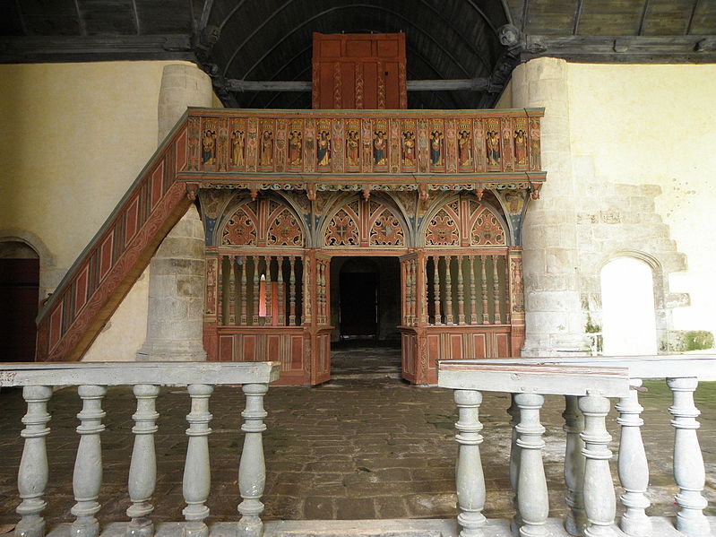 La chapelle Saint-Nicolas de Priziac (Morbihan) est construite en forme de croix latine, avec une nef, un transept et un chevet carré percé d'une grande baie à meneaux. Sur le pignon occidental se dresse un petit clocher ajouré, accessible par une tourelle latérale ; le clocher porte les dates 1533 (?) et 1583, et la porte ouest porte la date 1580 (ou 1586). L'intérieur est couvert d'une voûte en charpente lambrissée et un jubé Renaissance en bois polychrome sépare la nef du transept. Ce jubé, daté de 1580 pour sa polychromie, présente sur le côté du chœur douze statuettes représentant les apôtres séparées par des cariatides, et sur l'autre face neuf panneaux sculptés en haut-relief illustrant la légende de saint Nicolas. L'un de ces panneaux montre le saint accompagné d'un baquet contenant trois enfants nus aux mains jointes, figure probablement liée aux fonts baptismaux. Les arcades de la claire-voie sont ornées de motifs Renaissance et d'écus, dont l'un est attribué à Yves Le Scanff, seigneur de Dréors, et un autre, mi-parti, rappelle Pierre Le Scanff et Jeanne du Juch. La chapelle contient également une roue à carillons et plusieurs statues, dont une descente de Croix et une statue de saint Nicolas. La présence de la chapelle est attestée dès 1516, année d'un conflit de prééminence entre Pierre Le Scanff, seigneur du Dréors, et Yvon Le Digoedel, fondateur et constructeur ; l'arbitrage reconnut la supériorité des seigneurs du Dréors et leurs armes figurèrent sur le pignon ouest jusqu'à la Révolution. Le jubé fut commandé vers 1565–1566, peint en 1580 puis repeint en 1768 ; l'inscription ancienne a été mal lue mais se rapporte vraisemblablement à 1580. La chapelle est classée au titre des monuments historiques depuis le 28 octobre 1922. Située en un lieu isolé de Priziac, la chapelle se trouve à environ cinq cents mètres des premières habitations ; le village de Kerviguen est au sud du bourg. Les vitraux originaux du XVe siècle avaient été placés en lieu sûr avant la Seconde Guerre mondiale par l'inspection des Monuments historiques et le verrier Jean-Jacques Grüber, mais ils disparurent pendant la guerre. Une caisse contenant ces vitraux fut retrouvée en 1978 dans le dépôt des Monuments historiques et, par erreur d'adresse, expédiée à Trizac dans le Cantal ; depuis 1994 ces verrières représentant la légende de la cane de Montfort ornent l'église de Trizac. Le pardon de Saint-Nicolas était marqué par une tradition appelée Pistolance, nom dérivé de l'expression Prince d'Orange : le jour du pardon on dressait une effigie du prince au sommet d'un mât entouré de fagots, on la brûlait après qu'un tireur l'avait renversée d'un coup de fusil, et les fidèles se partageaient les dépouilles de l'effigie. Cette coutume, signalée comme ayant commencé en 1690, se poursuivit jusqu'en 1828.