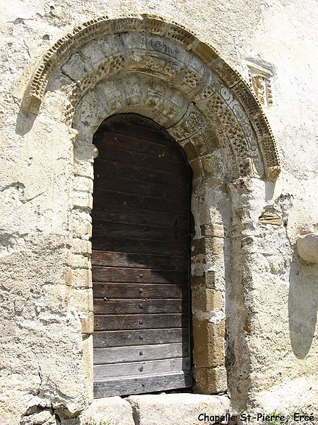 L'ancienne chapelle Saint-Pierre d'Ercé, dans l'Ariège, est un petit édifice religieux catholique dont l'origine remonte au XIe siècle. Elle se situe à l'entrée du village, au bord de la RD 32 et à proximité du Garbet. La chapelle présente une nef rectangulaire, un chevet plat, une tribune et un clocheton à une arcade implanté à l'ouest. L'édifice s'ouvre par un portail roman orné, à sa droite, d'un bas-relief représentant saint Pierre dans une attitude rare. Dans les années 1970, la direction de l'équipement proposa de la raser en raison de sa proximité avec la route, proposition à laquelle la municipalité s'opposa. La chapelle a été inscrite à l'inventaire des monuments historiques par arrêté du 19 mars 1979. En octobre 1996, la cloche dite "Simone" y a été installée ; elle a été financée par l'association des Amis de Saint-Lizier et du Couserans et nommée en l'honneur de l'historienne Simone Henry, présidente de cette association. À l'intérieur, le maître-autel, le retable monumental et le tabernacle, en bois sculpté, datent du XVIIIe siècle. Ces éléments, ainsi que le tableau de saint Pierre, sont classés au titre des objets des monuments historiques depuis 1984.