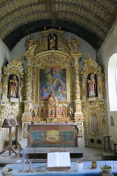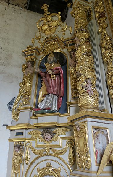 La chapelle Saint-Pierre est une ancienne église paroissiale située à Saint-Pierre-de-Sommaire, hameau de la commune de Saint-Nicolas-de-Sommaire, dans le département de l'Orne, entre Saint-Nicolas et Rugles. L'édifice remonte au début du XVe siècle, voire au XIVe. Elle est classée au titre des monuments historiques depuis le 19 mai 1906 ; la paroisse de Saint-Pierre-de-Sommaire fut absorbée par Saint-Nicolas-de-Sommaire en 1839. Les premières mentions écrites datent de 1520, lorsque Guy de Sainte-Marie est nommé curé en remplacement de Jean Beaudoit ; la paroisse dépendait du diocèse d'Évreux et avait pour patrons-présentateurs alternatifs les seigneurs des fiefs de l'Auvent et de Raveton. En 1634 François de La Pierre présenta Guillaume Maillard à la cure ; celui-ci fut curé jusqu'à sa mort en 1667 et enrichit le mobilier de la chapelle, comme l'atteste une plaque funéraire en ardoise apposée près de l'entrée. Cette plaque rappelle notamment des travaux et donations réalisés en 1645, 1646, 1652 et 1657. L'édifice, d'aspect rural, est construit en moellons de silex recouverts de chaux ; son toit et son clocher sont couverts de bardeaux de bois et surmontés d'une petite flèche. À l'intérieur, un arc triomphal ogival sépare la nef du chœur. La voûte est en bois, formée de douves ornées de motifs peints au pinceau en noir, et soutenue par une charpente robuste avec entraits et poinçons. Le chœur abrite un tabernacle monumental posé sur deux gradins, orné d'une peinture en trompe-l'œil représentant un autel en tombeau, surmonté d'une sculpture du Christ aux liens entourée des quatre évangélistes. Le retable du maître-autel, représentatif de la tradition des retables du pays d'Ouche en bois des forêts locales, se distingue par un décor sculpté et doré abondant : anges sur les rampants du fronton rompu, cadre du tableau de la Résurrection ciselé de feuilles de chêne, chutes de fruits et angelots, niche flanquée de cariatides abritant une statue du Christ Sauveur, et deux colonnes torsadées séparant la partie centrale de ses ailes. Au niveau inférieur, les portes de la sacristie portent des peintures sur bois représentant Moïse au nord, très effacée, et Aaron en costume épiscopal au sud ; au‑dessus figurent une statue de saint Pierre au nord et celle d'un évêque au sud. Sur la paroi nord du chœur se trouve une statue-reliquaire de saint Claude. Dans la nef, deux autels latéraux à l'entrée du chœur sont plus anciens que le maître-autel : celui du nord associe la donation du Rosaire au souvenir du roi Louis XIII et porte une statue de la Vierge au Rosaire ; l'autel sud, daté de 1643, représente une scène rare de la circoncision où Marie tient le couteau, et son retable est couronné d'une statue de saint Méen, invoqué pour les maladies de la peau. Sous la voûte court une série de vingt-trois tableaux sur toile, encadrés et sculptés, retraçant la vie du Christ et datant du XVIIe siècle. La chaire remonte à la fin du XVIe siècle et le confessionnal est daté de 1770. À gauche en entrant se voit la plaque funéraire en ardoise de Guillaume Maillard ; à droite se trouvent le baptistère et un bas-relief en pierre daté des XVe–XVIe siècles représentant une Vierge de Pitié, sainte Barbe et le donateur. Selon le panneau d'information à l'entrée, une messe pour Notre-Dame du Rosaire est célébrée chaque octobre et la chapelle est ouverte lors des Journées du patrimoine.
