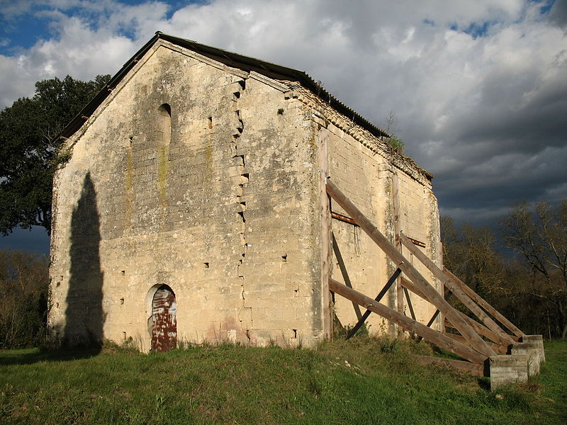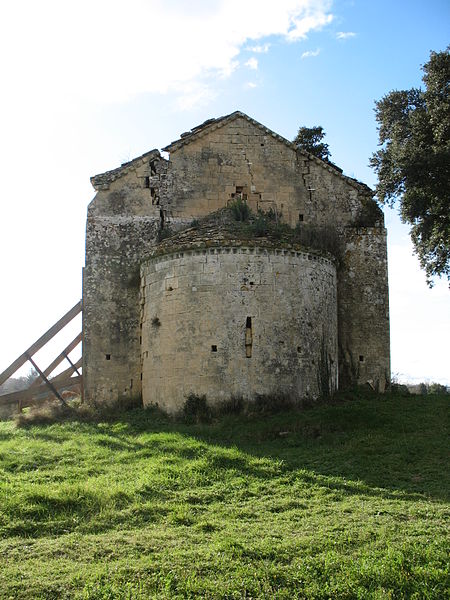 Édification de la chapelle romane avec une nef voûtée et une abside en cul-de-four.