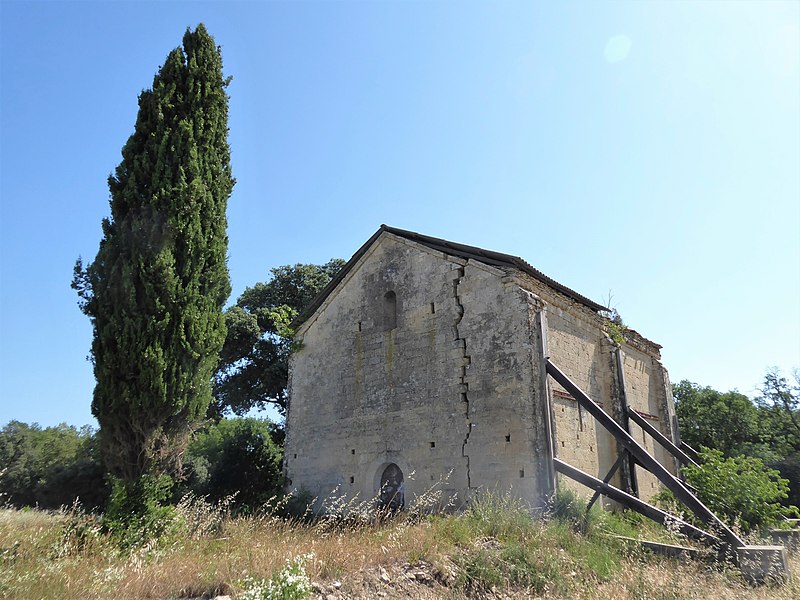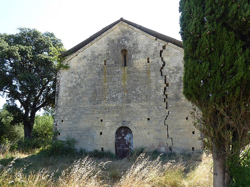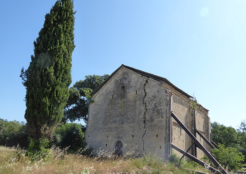 Le prieuré Saint-Pierre-ès-Liens remonte au XIIe siècle et était uni au chapitre collégial de Notre-Dame de Beaucaire. Avant l'effondrement de sa voûte, la chapelle constituait un exemple presque parfait des chapelles romanes de la région. Elle se composait d'une unique nef voûtée en berceau, terminée par une abside en cul-de-four, plus basse et plus étroite. La seule décoration se réduit à une rangée de denticules doublée d'une rangée de dents de scie, tout autour de l'abside, sous les sommiers. La nef devait à l'origine être couverte de lauzes ; l'abside a conservé sa couverture primitive.