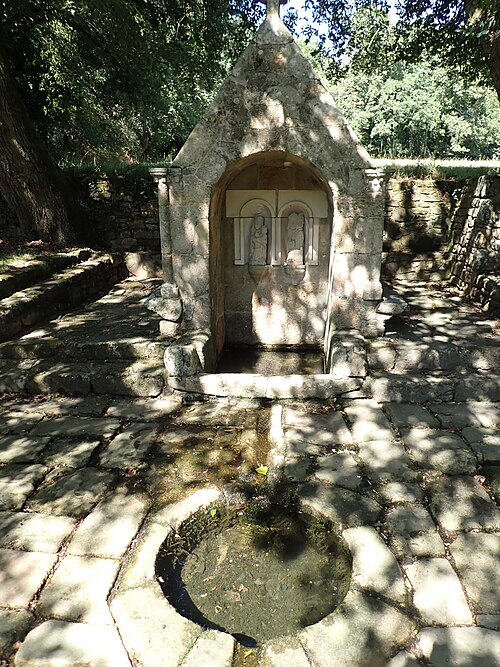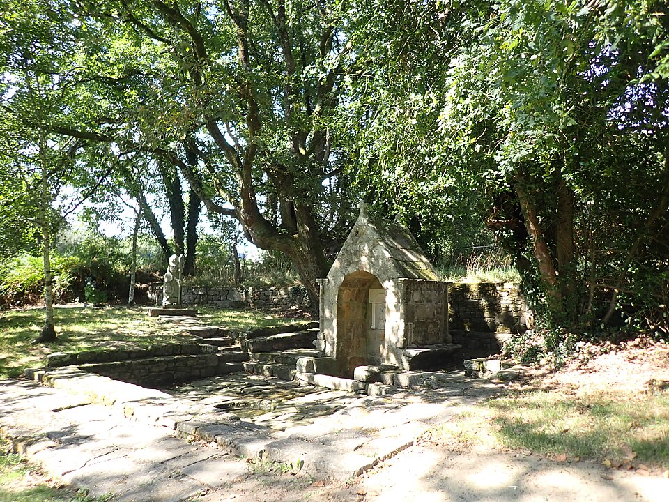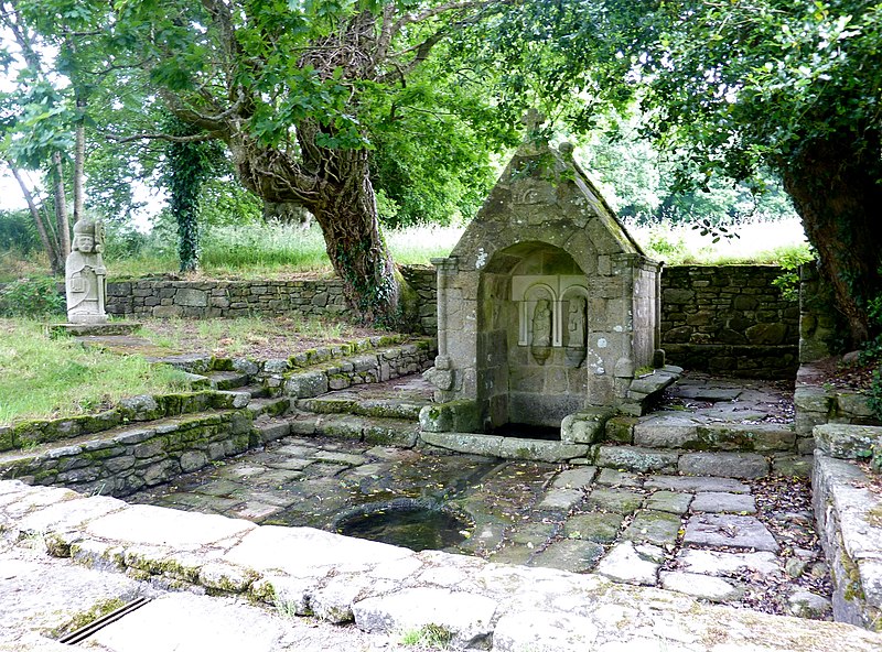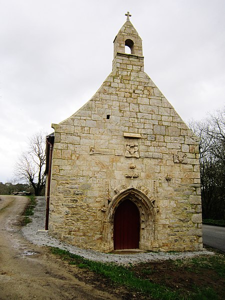 La chapelle Saint-Quirin, située au lieu-dit Saint-Guérin à Bréch (Morbihan), est une des rares chapelles rurales bretonnes d'architecture classique, érigée en 1676, date portée sur le pignon ouest sous le clocher. L'édifice présente un plan rectangulaire, un chevet plat et une sacristie postérieure à cinq pans accolée dans l'axe de la chapelle. Le pignon ouest comporte une porte rectangulaire surmontée d'une corniche et une niche munie d'un oculus ; le clocher, de plan carré, est coiffé d'une petite flèche. La chapelle remplace un édifice plus ancien dont la date est inconnue ; la porte sud chanfreinée, pourvue de griffes, pourrait provenir de cet édifice antérieur. Cette chapelle privée dépendait de la seigneurie de Kerivalan, alors propriété de la famille de Robien ; au pignon ouest figurent les armes de Sébastien de Robien en alliance avec celles de son épouse, probablement Françoise du Cleuz, interprétées comme d'or à l'émanche de trois pièces de gueules, mouvant du flanc senestre. La date de 1696 inscrite sur l'emmarchement de l'autel pourrait correspondre à l'érection du retable. La dédicace de la chapelle reste incertaine : on a avancé plusieurs identifications, parmi lesquelles saint Guénin, saint Quirin, un saint breton nommé Quiry ou Kiri, ou la divinité romaine Quirinus, le village de Saint-Guénin ayant été habité à l'époque gallo-romaine. À proximité se trouve une fontaine de dévotion datée du XVIIe siècle et restaurée en 1890 ; une statue en granite de saint Quirin a été placée à côté en 1998. La chapelle et la fontaine faisaient l'objet d'un pèlerinage au cours duquel les fidèles faisaient plusieurs tours de la chapelle, participaient à la messe, puis se rendaient à la fontaine pour laver le membre malade dans le bassin et boire son eau. On rapporte que certains pèlerins revenaient guéris ; le sanctuaire attirait notamment des personnes souffrant de fièvres, de rhumatismes ou de troubles oculaires et locomoteurs. Un cahier des miracles, contenant le récit de 81 guérisons, a été tenu entre 1670 et 1770. La chapelle et son retable sont classés au titre des monuments historiques depuis le 9 septembre 1993. Des photographies et documents présentent la chapelle sous différents angles (vue d'ensemble, façade sud, intérieur), le retable, ainsi que la fontaine avec son bassin rond destiné aux ablutions des malades et les statues de la Vierge et de saint Quirin.