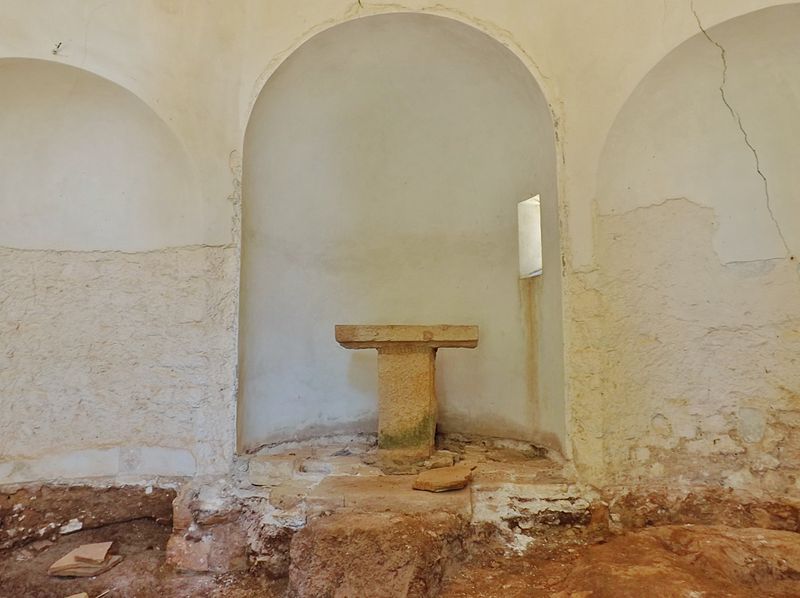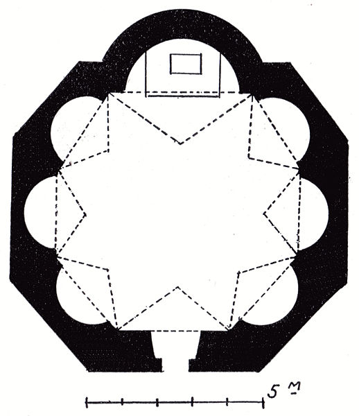 Architecturalement, la chapelle a un plan octogonal d'environ 8 mètres de diamètre ; six pans de l'octogone sont percés de niches semi-circulaires, le pan oriental ouvre sur une abside et la porte en plein cintre se situe en vis-à-vis de celle-ci. La couverture est formée d'une voûte en blocage aux arêtes rayonnantes.