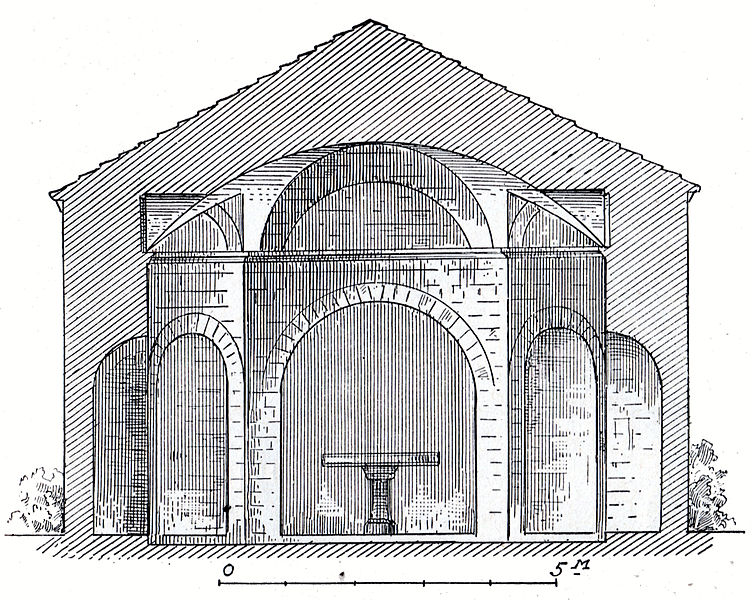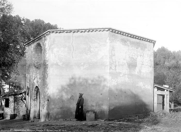 La chapelle actuelle, à plan centré octogonal, est dédiée au Saint-Sauveur, culte qui s'est développé à l'époque carolingienne sous l'influence de Rome ; il est possible qu'elle ait participé à une liturgie stationnale. Prosper Mérimée a proposé qu'elle fût un baptistère, mais les fouilles de 1948 n'ont pas révélé de cuve baptismale, et il est plus probable que l'édifice ait été un martyrium. La chapelle date probablement du début du XIe siècle ; sa voûte en étoile est attribuée à une phase de construction ou de remaniement plus tardive, probablement au XIIe siècle.