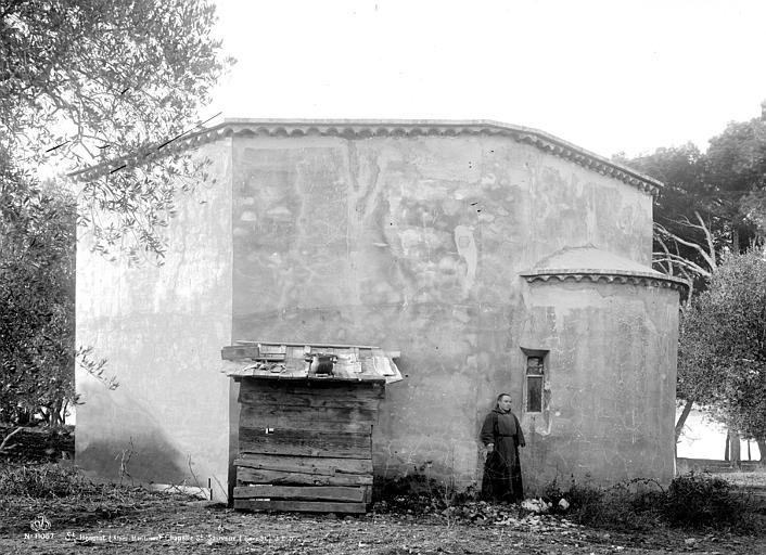 Honorat et Caprais se sont retirés sur l'île de Lérina vers 400-410 avec l'accord de l'évêque de Fréjus, saint Léonce. Les fouilles montrent que le site est occupé depuis le Ve siècle ; la première chapelle correspondait à l'organisation du coenobium de l'Antiquité tardive. Les textes de l'époque évoquent la coexistence d'une structure monumentale communautaire et d'aménagements destinés à une vie plus solitaire, comme l'attestent les écrits d'Eucher et de Sidoine Apollinaire. Cette première chapelle était un bâtiment rectangulaire d'environ 7 mètres de longueur, doté d'une abside semi-circulaire, et elle a été abandonnée au VIe siècle.