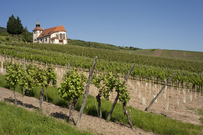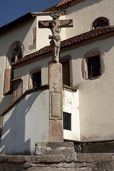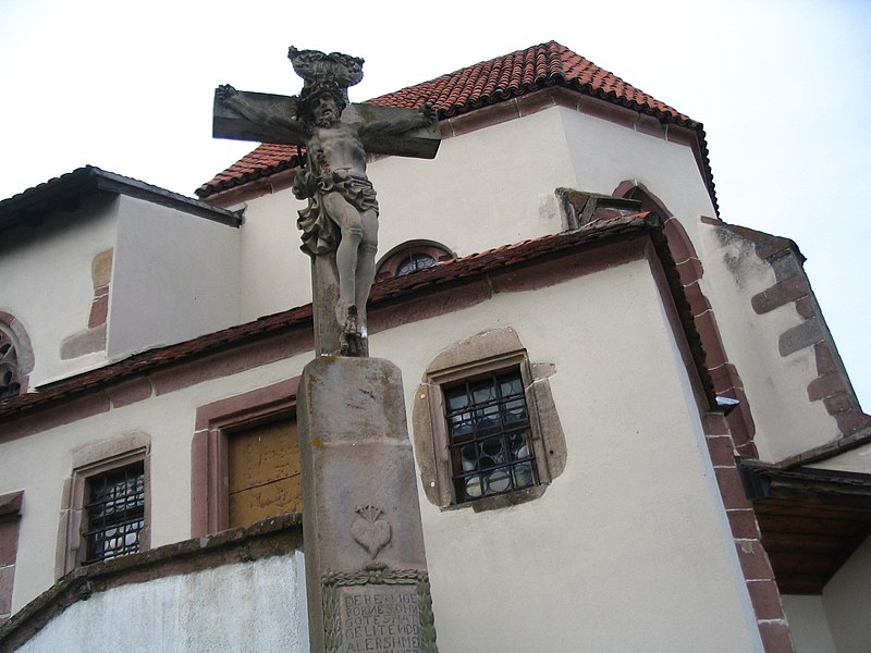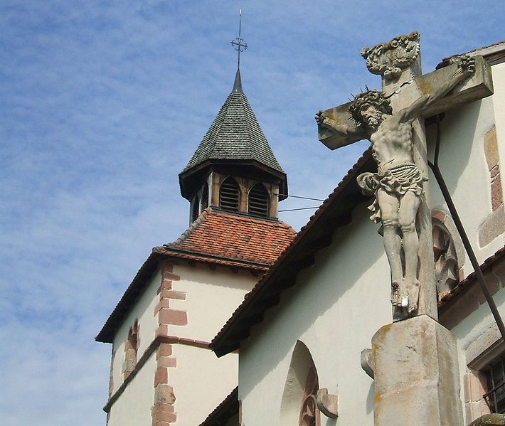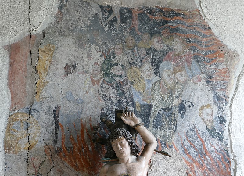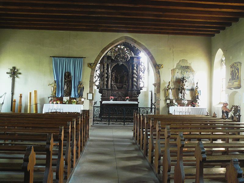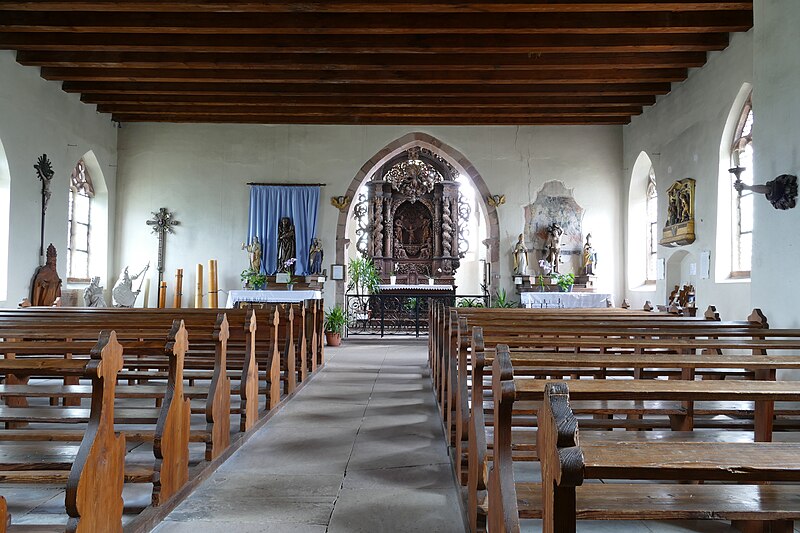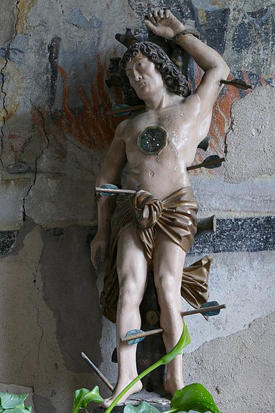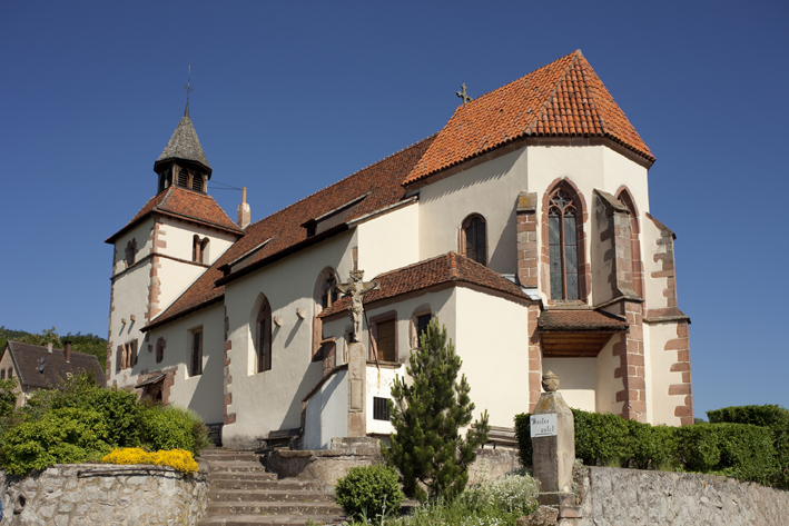 La chapelle Saint-Sébastien, située à Dambach-la-Ville dans le Bas-Rhin, est une chapelle de pèlerinage classée monument historique par arrêté du 24 mai 1921. Partiellement endommagée pendant la Seconde Guerre mondiale, elle rassemble des éléments architecturaux de plusieurs époques. Les parties les plus anciennes — la tour-clocher, l'ossuaire et une portion de la nef — remontent probablement au XIIe siècle; le chœur a été reconstruit au début du XIVe siècle, la nef remaniée aux XVe et XVIIe siècles et la sacristie ajoutée en 1685. Le logement du gardien a été reconstruit en 1963. Perchée sur les hauteurs du vignoble du Frankstein, à flanc de coteau, la chapelle domine Dambach-la-Ville et la région entre Sélestat au sud et la colline d'Epfig au nord. La vue s'étend à l'est sur le Kayserstuhl et la Forêt‑Noire; par temps clair, la flèche de la cathédrale de Strasbourg est parfois visible. La chapelle est l'ancienne église paroissiale du village disparu d'Oberkirch et apparaît pour la première fois dans un document daté de 1285. L'élévation de Dambach au rang de ville épiscopale en 1340, la construction de ses fortifications entre 1328 et 1340 et l'édification d'une nouvelle grande église entraînèrent le déclin d'Oberkirch. L'ordonnance de l'évêque Jean II de Lichtenberg en 1356, qui imposa que tous les offices se tiennent à l'église Saint‑Étienne de Dambach, précipita la disparition du village, tandis que Saint‑Sébastien conserva sa fonction de lieu de pèlerinage. La chapelle fut donnée la même année aux chanoines augustins de Dachstein, transférée à la cathédrale de Strasbourg en 1359, puis cédée au milieu du XVe siècle aux Hospices civils de Strasbourg. En 1480 le pape Innocent VIII supprima les deux vicariats d'Oberkirch et d'Altenwiller. Confisquée pendant la Révolution française, elle fut vendue aux enchères en 1792 après des tensions liées au refus de serment du curé Zaepffel et de son vicaire. Les habitants, partisans du curé, achetèrent collectivement la chapelle pour 1420 livres; trente‑deux donateurs assumèrent alors son administration et leurs descendants forment aujourd'hui la Confrérie Saint‑Sébastien, association de droit local alsacien‑mosellan responsable de sa conservation. Après la Seconde Guerre mondiale, la chapelle, endommagée par des faits de guerre et en mauvais état, a été restaurée grâce à des financements des Monuments historiques, du conseil général, de la commune et de la population; elle a été rendue aux fidèles et aux visiteurs le lundi de Pâques 1962. La chapelle présente un mélange de styles : un clocher roman, une nef et un chevet gothiques, une sacristie de la Renaissance et un maître‑autel baroque. La tour‑clocher, la partie la plus ancienne, est massive, carrée et probablement du XIIe siècle; son assise sans ouverture originelle suggère une fonction défensive. L'étage des cloches comporte quatre fenêtres bigéminées à arcades en plein cintre et la tour est coiffée d'un toit pyramidal tronqué, d'un couronnement carré en bois et d'un clocheton octogonal surmonté d'une croix. Un bâtiment central à toit en bâtière relie la tour au chevet et abrite la nef; le mur sud comporte une porte romane à côté de la tour, une grande fenêtre rectangulaire du XVIIe siècle au vitrage en cul‑de‑bouteille et deux fenêtres gothiques du XVe siècle. À l'est, la sacristie de style Renaissance, datée du XVIIe siècle, est accessible par un escalier extérieur, et la façade nord présente deux fenêtres gothiques pendantes et une fenêtre romane « dormante ». Le chevet gothique du début du XIVe siècle, décalé par rapport à la nef, est renforcé par quatre contreforts étagés qui encadrent trois baies vitrées, et son pignon offre une croix florencée en granite. La niche entre deux contreforts abritait autrefois un groupe sculpté en bois représentant Jésus au Mont des Oliviers, aujourd'hui disparu, et la partie nord du pignon de la nef renferme une cave voûtée ancienne servant d'ossuaire, dont l'origine reste incertaine. Au droit de la sacristie se dresse un Christ en croix daté de 1687, appelé localement la « Croix miraculeuse », dont l'expression est décrite comme mêlant douleur et miséricorde. La nef mesure 16,5 m de long, a une largeur comprise entre 9,5 et 10,5 m, est couverte d'un plafond plat en bois à poutres apparentes et comprend une tribune au fond; son mur avant s'ouvre sur un grand arc ogival en grès rose excentré vers le sud. Le chœur, reconstruit au début du XIVe siècle, est voûté en croisées d'ogives et porte une clé de voûte polychrome représentant le visage du Christ; les vitraux des trois baies arrière sont en grande partie masqués par le maître‑autel. Le maître‑autel baroque, pièce maîtresse de la chapelle, est finement sculpté, repose sur une pierre d'autel romane, porte une statue du martyre de saint Sébastien et illustre la Trinité verticalement et la Sainte Famille horizontalement; il a été réalisé entre 1690 et 1692 par les frères Philippe et Clément Winterhalter et l'ébéniste Johannes Eusebius Beyer. La statuaire comprend une Vierge à l'Enfant en bois datée de la fin du XVe siècle dont la copie exposée a été réalisée avec le concours du musée Unterlinden de Colmar, une statue reliquaire de saint Sébastien en bois polychrome du XVIe siècle sur l'autel latéral droit, des représentations de saint Urbain (XVIIe siècle) et de saint Nicolas (XVIIIe siècle) ainsi que deux statues du XVIIIe siècle représentant saint Michel terrassant le dragon et saint Urbain. Les murs latéraux de la nef sont ornés d'une série de six bras de lumière en bois, de style des XVIIe et XVIIIe siècles. La Confrérie Saint‑Sébastien, propriétaire de la chapelle et de ses abords, assure son entretien et sa gestion; héritière des trente‑deux donateurs de 1792, elle s'es