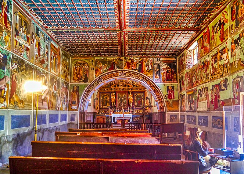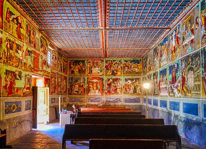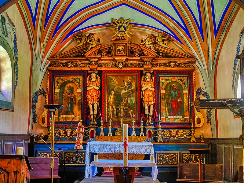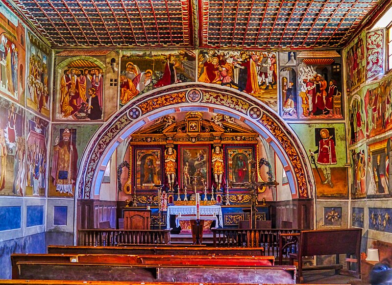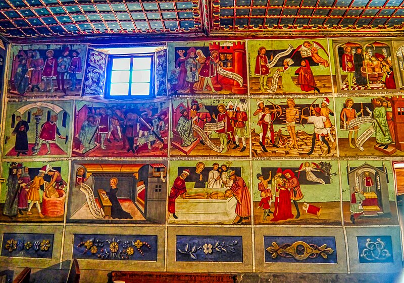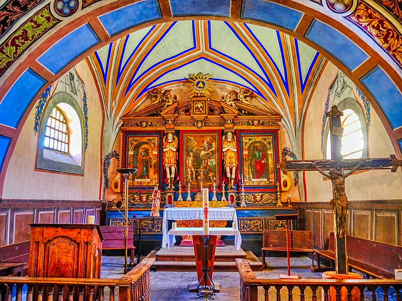 La chapelle Saint-Sébastien, édifice catholique du XVe siècle, se dresse au‑dessus du village de Lanslevillard (Haute‑Maurienne, Savoie) à 1 490 m d'altitude. Elle est renommée pour ses peintures murales de la fin du XVe siècle et est classée au titre des monuments historiques par arrêté du 9 juin 1897. La chapelle a probablement été construite en 1446, comme l'indique une pierre, et l'inscription «1518» peinte sur un caisson du plafond serait celle d'une restauration des peintures. Les murs intérieurs portent deux cycles de peintures : la vie du Christ, présentée en trente‑six panneaux répartis sur deux registres, et la vie de saint Sébastien, en dix‑sept panneaux répartis sur trois registres, chaque panneau étant accompagné d'une légende en latin. Saint Sébastien, protecteur contre la peste, est fréquemment invoqué dans les Alpes ; selon la tradition orale, le cycle évoquant sa vie aurait été commandé par un rescapé d'une épidémie. L'une des scènes montre un médecin incisant un bubon sur une femme atteinte de la peste. Les observations techniques ont d'abord suggéré une exécution à la détrempe, mais la présence de sinopia plaide plutôt pour une peinture à fresque. La facture des peintures est très proche de celle de la vie du Christ réalisée par l'atelier de Bartolomeo Serra à la chiesa Plebana de San Maurizio Canavese en 1495. Des sondages autour de la chapelle ont mis au jour des dizaines de sépultures et du mobilier funéraire. Le datage par radiocarbone a permis de préciser plusieurs occupations du site : un foyer en plein air du Néolithique (-3517 à -3343 av. J.-C.), une nécropole de La Tène vers -75 et des inhumations du haut Moyen Âge (VIIIe–IXe siècles). Ces découvertes attestent une occupation humaine du site depuis la préhistoire jusqu'au haut Moyen Âge.