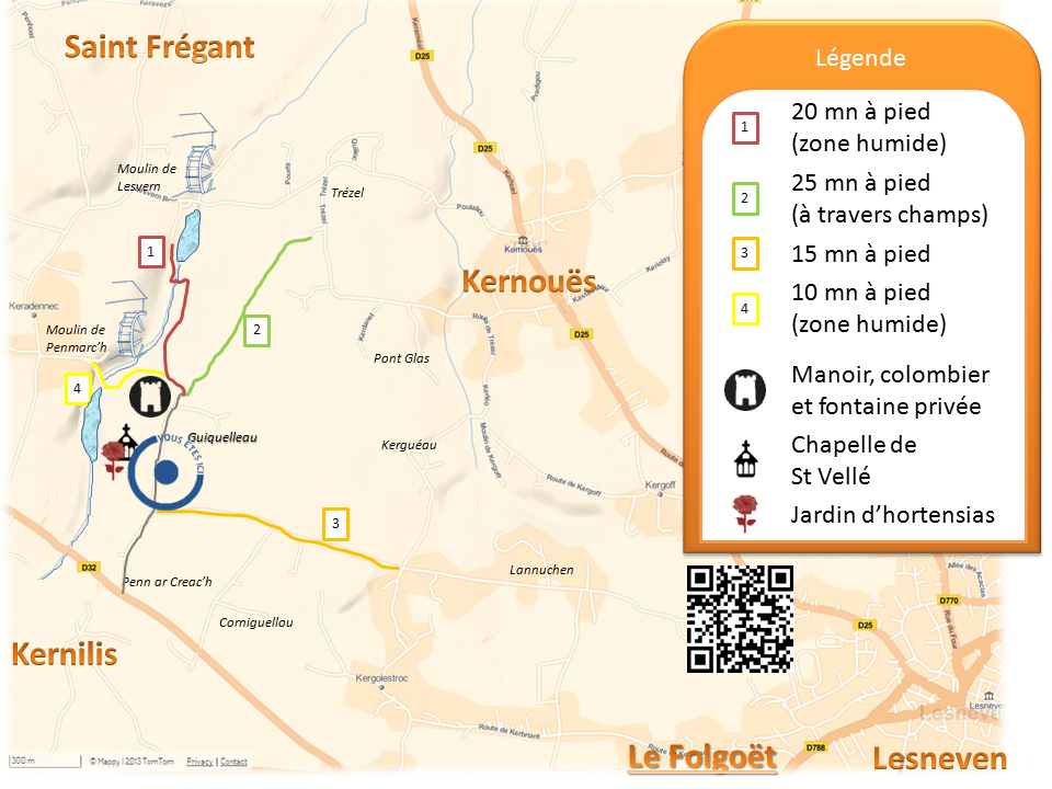 La chapelle Saint-Vellé de Gicqueleau, dite aussi Guicquelleau, se situe sur la commune du Folgoët, dans le Finistère, et forme un carrefour avec les communes voisines de Saint-Frégant et Kernoues. Elle est inscrite à l'inventaire des monuments historiques depuis 1975. Saint Vellé, appelé aussi saint Quelleau, serait un ermite venu du Pays de Galles au Ve ou VIe siècle et aurait vécu dans le vallon voisin de Toulran ; il est traditionnellement invoqué contre les maux de tête. Un vitrail représentant le saint se trouve dans la basilique du Folgoët. Une première chapelle aurait été édifiée sur le site aux IXe‑Xe siècles ; l'édifice actuel, chapelle privative du manoir de Guicquelleau, a été construit entre le XVIe et le XVIIIe siècle. Vers 1530, après que l'ancienne église de la paroisse d'Elestrec eut été détruite par la foudre, les paroissiens utilisèrent la chapelle de Saint‑Vellé qui devint alors église paroissiale, donnant au lieu le nom de Guicquelleau, formé du breton guik (« bourg ») et gwelleo (« saint Vellé »). D'importants travaux eurent lieu en 1675 : la chapelle fut notamment surmontée d'un clocheton à dôme et lanternon et dotée d'un cimetière, d'un ossuaire, d'un mur d'enclos et d'un presbytère. En 1778 Jean‑Baptiste Ogée décrit la paroisse de Guiquelleau (ou Ellestrec) comme fertile, située dans le ressort de Saint‑Pol‑de‑Léon, comptant environ 900 communicants, comprenant plusieurs fiefs relevant du roi et englobant le Folgoët. Guicquelleau fut érigé en commune en 1790 et une petite école s'ouvrit en face de la chapelle. En 1826, la chapelle, devenue trop petite pour l'ensemble des fidèles, vit le transfert du culte vers la basilique Notre‑Dame‑du‑Folgoët ; la paroisse prit ce nom en 1829 par ordonnance royale. L'édifice a fait l'objet de restaurations en 1834 puis en 1986, cette dernière conduite par l'association Les Amis du Folgoët. En 1944, lors de l'occupation, les Allemands y installèrent un petit hôpital d'une vingtaine de lits et laissèrent des graffitis sur les murs ; après leur départ, un « pardon de réconciliation » fut célébré le 24 juin 1944 par le recteur Charles Guéguen. À la suite de fortes pluies, la commune a conforté en 2013 le mur de l'enclos donnant sur la route et Les Amis du Folgoët ont posé un garde‑corps. L'édifice présente un clocher à deux chambres amorti par un lanternon et porte le blason de la famille du manoir, Marc'hec, d'azur à trois quintefeuilles d'or. Un calvaire en granit monolithique, datant du Moyen Âge, repose sur un socle hexagonal à cinq degrés. Plusieurs sépultures de la famille Marec'h, seigneurs de Guiquelleau, s'y trouvent, ainsi que d'autres tombes anonymes ; deux stèles hémisphériques sont placées à la base du muret entourant la chapelle. L'intérieur conserve un maître‑autel de style Louis XV orné de boules dorées, un autel en pierre autrefois décoré de roses et d'œillets, ainsi que des statues, dont une sainte Marguerite, une Vierge à l'Enfant et saint Vellé posant la main sur la tête d'un enfant. Il n'y a plus de messe régulière, mais un pardon est organisé fin juin : la procession part de la fontaine privée du manoir de Guiquelleau, remonte vers la chapelle au son des cantiques, se termine par une messe sonorisée et la cloche marque la fin de l'office. Pour le temps de carême, les croyants se réunissent parfois à la chapelle pour se rendre ensuite à la basilique du Folgoët. Le site est entouré de champs cultivés et d'un jardin pédagogique où chaque espèce est étiquetée, offrant des couleurs changeantes selon les saisons. Les Amis du Folgoët ont participé à l'aménagement en « Terre d'Hortensia » et le lieu comporte notamment des hortensias et des camélias, ainsi que des essences indigènes comme l'aubépine et le frêne. Chaque été, l'association Arz e chapeliou bro leon organise des expositions d'artistes dans la chapelle ; les visites guidées sont gratuites et la chapelle est fermée le mardi. Des chemins accessibles à pied, en VTT ou à cheval permettent la découverte du ruisseau du bassin versant du Quillimadec, de sous‑bois et de sites patrimoniaux tels que d'anciens moulins ; le littoral et le site de Ménéham se trouvent à environ 16 km au nord. Après le pardon dominical de juin, un repas convivial de Kig ha Farz est suivi de parties de pétanque et de dominos organisées par Les Amis du Folgoët. La chapelle est fermée en dehors des jours de pardon et de la période des expositions ; l'accès est possible en voiture.