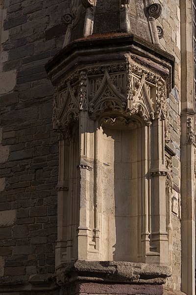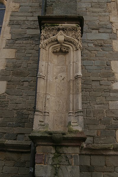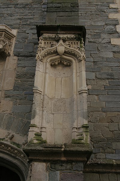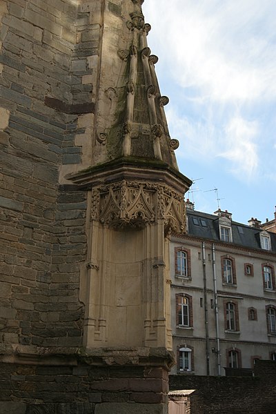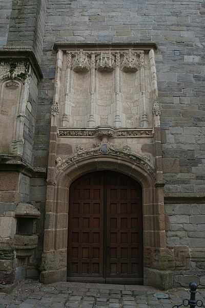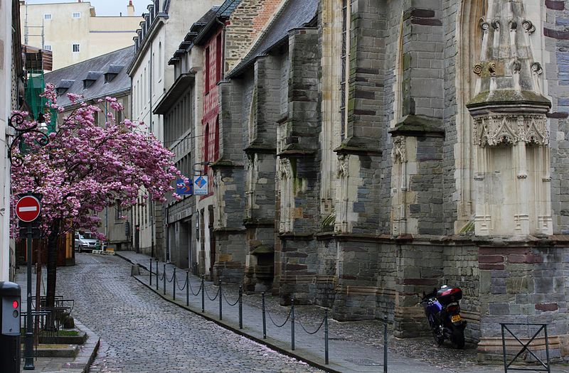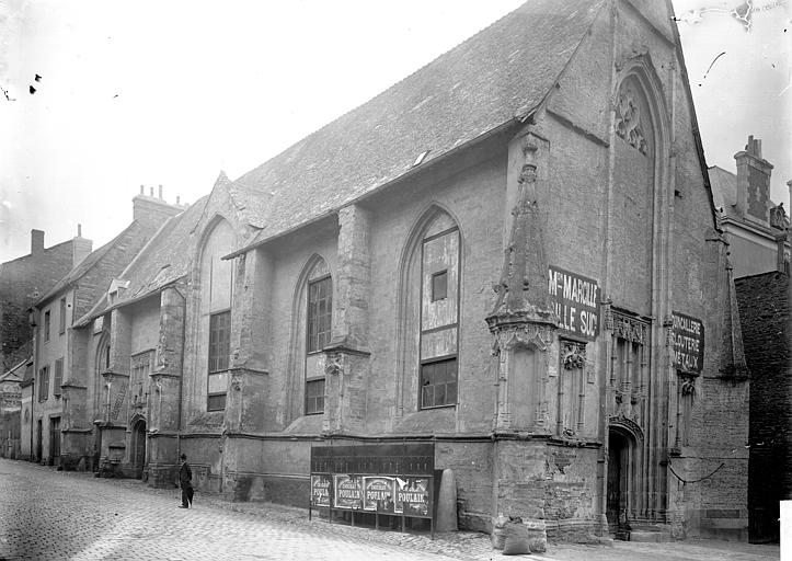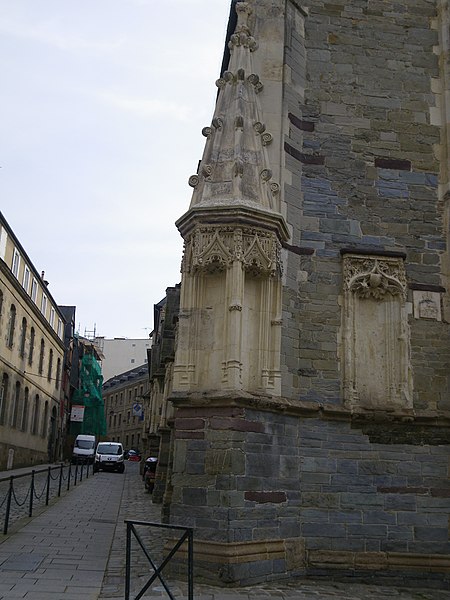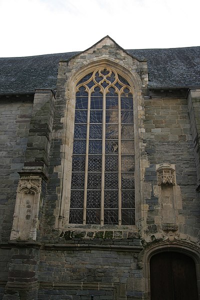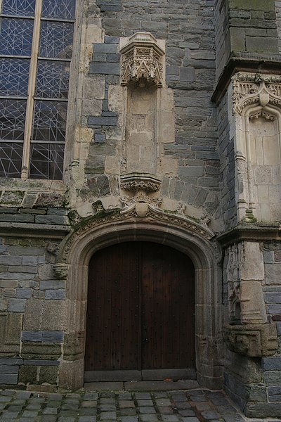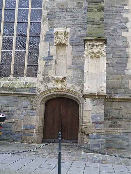 La chapelle Saint-Yves de Rennes conserve le souvenir du mariage d'Anne de Bretagne et de Charles VIII et constitue le dernier témoignage d'un vaste ensemble hospitalier établi au bord de la Vilaine. L'origine de l'hôpital remonte à 1358, lorsque le chanoine Eudon Le Bouteiller transforma son manoir en maison-Dieu dédiée à la Vierge. Situé dans la paroisse Saint-Étienne, l'établissement fut d'abord géré par deux chapelains choisis par le prieur de l'abbaye Saint-Melaine et par deux bourgeois, puis, à mesure des donations, par trois prévôts et un prêtre nommés par la Communauté de Ville et le Chapitre cathédral. Placé sous l'invocation de saint Yves, l'hôpital et sa chapelle furent reconstruits, la chapelle actuelle remplaçant un édifice du XIVe siècle et édifiée en 1494 selon le dossier de Véronique Orain. L'établissement connut plusieurs étapes d'évolution : il fut réuni à l'hôpital Sainte-Anne en 1557, comptait en 1583 quatre-vingt-deux lits répartis entre ancienne et nouvelle salle et chambres de femmes, fut agrandi en 1628 par de nouvelles salles à l'ouest de la cour et accueillait en 1630 deux cent vingt pauvres. En 1728, il servit également de grenier à blé et de caves à cidre pour les hôpitaux de Rennes. Les plans et vues successifs — une première représentation de 1616, un plan de 1685 le montrant adossé au rempart de la première enceinte, un plan détaillé de 1726 décrivant la cour accessible depuis la rue, un corps de bâtiment à l'ouest avec un passage enjambant une rampe vers la rivière, un cimetière et des jardins, puis un plan de 1877 signalant des destructions liées à la rectification des quais — restitue l'organisation du site. Les religieuses Augustines de la Miséricorde assurèrent le service des malades de 1644 à la Révolution, revinrent en 1804 et participèrent au déménagement de l'hôpital, activité qui cessa en 1896. L'hôpital fut transféré au nouvel Hôtel-Dieu au milieu du XIXe siècle, opération datée en source de 1858, et les bâtiments classiques furent progressivement détruits au fur et à mesure de l'aménagement du quai Duguay-Trouin. De 1754 à 1790, la chapelle abrita le Chapitre cathédral après l'interdiction de la cathédrale Saint-Pierre. Après le déménagement de l'Hôtel-Dieu, la chapelle fut transformée en quincaillerie. Elle a été classée au titre des monuments historiques le 10 mars 1945, rachetée par la ville en 1981, puis restaurée et aménagée pour accueillir l'office de tourisme de Rennes Métropole jusqu'en 2019 ; des vitraux créés par Gérard Lardeur y furent posés en 1997. En 2025, la ville a mis la chapelle en vente via un appel d'offres sans usages prédéterminés, ouverte aux projets compatibles avec la mise en valeur du lieu. Sur le plan architectural, l'édifice présente une nef rectangulaire voûtée dont le mur nord conserve des vestiges de l'appareil du XIVe siècle, des sablières gravées du XVe siècle et, à la façade sur la rue Le Bouteiller, une porte d'entrée à arc surbaissé surmontée de trois niches aujourd'hui vides. La façade sur la rue Saint-Yves comporte quatre fenêtres, dont une très grande, et une porte basse également surmontée de niches. L'inventaire de 1793 mentionne un retable de 1673 réalisé par François Gillet et un buffet d'orgue démoli le 9 novembre 1800. Enfin, l'ensemble des bâtiments entourant la chapelle a été transformé à l'occasion de l'installation de l'office de tourisme pour servir de bureaux et d'espace d'accueil, la nef accueillant un parcours éducatif sur l'histoire et l'architecture de Rennes.