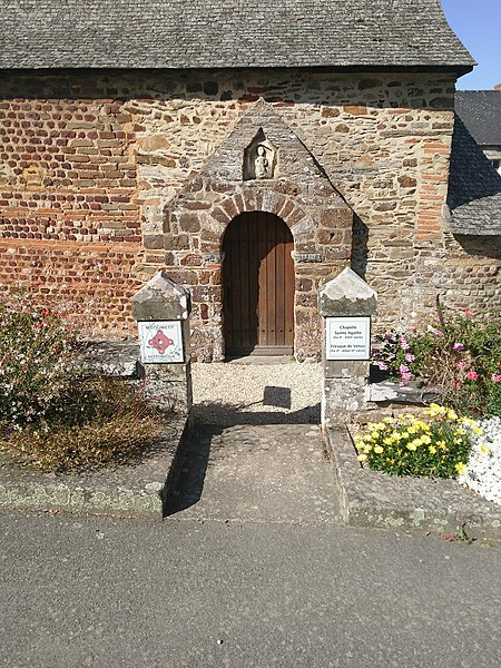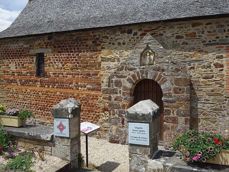 La chapelle Sainte-Agathe, située au centre du bourg de Langon (Ille‑et‑Vilaine, Bretagne), se trouve le long de la Grande Rue, en face de l'église Saint‑Pierre. Elle est l'un des rares bâtiments gallo‑romains conservés en Bretagne. L'édifice, construit vers le IVe siècle, a été converti en chapelle au haut Moyen Âge et est mentionné au IXe siècle sous le vocable de saint Vénier ; en 838 il est attesté qu'elle était dédiée à ce saint. Des fouilles et études ont montré que l'abside avait une destination antérieure : au IIe siècle elle servait de frigidarium pour les thermes privés d'une villa gallo‑romaine, découverte éclairée par des travaux de 1996. La chapelle a été ornée d'une nouvelle fresque aux VIe–VIIe siècles, et la partie centrale du gros œuvre date de l'époque romane (XIe siècle). L'édifice a été classé monument historique dès la liste de 1840, restauré par Pariset en 1904 et a fait l'objet de fouilles, notamment en 1918 par J. Douillard. L'étude archéologique de 1839 a mis au jour, dans le cul‑de‑four de l'abside, une fresque du IVe siècle recouverte plus tard d'un badigeon des VIe–VIIe siècles. Cette peinture, partiellement détruite, représente Vénus sortant des eaux (ou Amphitrite), accompagnée d'Éros chevauchant un dauphin et d'une multitude de poissons ; elle est classée au titre des monuments historiques. L'édifice présente un plan rectangulaire d'environ cinq mètres de longueur, des murs en grès et en brique, et une absidiole semi‑circulaire profonde de deux mètres dont la voûte porte la fresque. Le mobilier comprend un chapiteau du XVIIe siècle à décor en bas‑relief, un décor en bas‑relief érodé découvert lors de fouilles de 1930 et placé au‑dessus de la porte en 1910, trois sarcophages probablement mérovingiens et une statue de sainte ; l'ensemble du mobilier a été inventorié. Devant la chapelle se trouvait autrefois un calvaire. Aux abords et dans la commune subsistent plusieurs vestiges de l'époque romaine, notamment une portion remarquablement conservée de la voie romaine de Nantes à Corseul au lieu‑dit la Louzais.