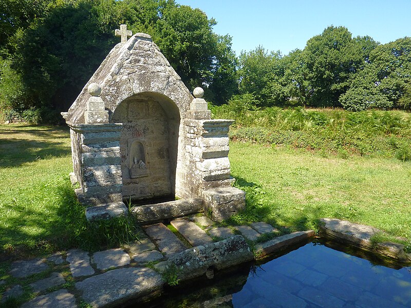 La chapelle Sainte-Catherine et sa fontaine se trouvent sur la commune de Lizio, dans le Morbihan. L’origine de la chapelle est peut-être templière, mais il ne subsiste que peu d’éléments de cette époque ; l’arc en ogive qui divise la nef en deux parties est considéré comme le seul vestige romannet. L’édifice, de plan rectangulaire, présente une porte encadrée d’un motif à fronton surmontée d’un oculus orné de six rayons rectilignes ; le rampant du pignon comporte des petits redents et, au sommet et aux deux points bas, de petites croix en granit. Vers 1200, des Templiers auraient établi à Sainte‑Catherine un petit prieuré et sa chapelle sur l’un des chemins menant à Compostelle ; après la suppression de l’Ordre, leurs biens sont passés aux Hospitaliers de Saint‑Jean de Jérusalem. La chapelle a été détruite par un incendie en 1615 ; un chapiteau porte la date 1616, tandis que l’arc diaphragme et la charpente armoricaine sont manifestement antérieurs au XVIe siècle. Une reconstruction importante a été menée sous l’autorité de Charles Laurencin, commandeur de Carentoir entre 1652 et 1675. La fontaine de dévotion porte la date de 1661 et des marques du XIXe siècle ; la croix de l’enclos, datée de 1708, a été offerte par le fabricien F. Le Merveilleux, la sacristie date de 1722 et le lambris a été refait en 1771, comme l’indique une inscription. L’ensemble chapelle‑fontaine est inscrit au titre des monuments historiques depuis le 29 mars 1935.