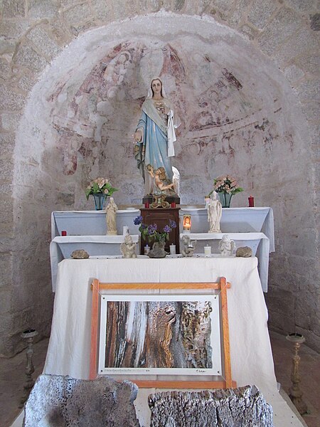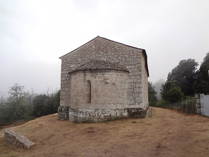 La chapelle Sainte‑Marie se compose d'une nef unique achevant sur une abside semi‑circulaire voûtée en cul‑de‑four. La façade occidentale et la majeure partie du mur sud ont été reconstruites en réutilisant les mêmes dalles de granit, tandis que le mur nord et l'abside semblent avoir conservé leur état primitif. Ancienne église piévane, dite chapelle de l'an mil, elle a été édifiée au cours des XIIe ou XIIIe siècles. Elle a cessé d'être église paroissiale lors de la réorganisation des circonscriptions ecclésiastiques du diocèse d'Ajaccio conduite par l'évêque titulaire au cours de la première moitié du XVIIe siècle. Restaurée dans la seconde moitié du XXe siècle, la chapelle reste ouverte au culte, notamment pour la célébration de l'Assomption.