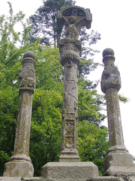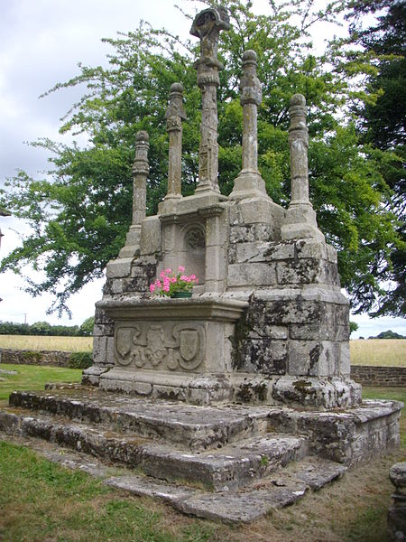 Architecturalement, la chapelle illustre un type régional de l'est du Morbihan : un clocher-mur doublé d'un prolongement couvert en ardoises qui protège les cordes, et un chevet à trois pignons aux faîtages inclinés. Sur la façade sud, on note une porte à arc en plein cintre et une baie à arc en tiers-point dont le fenestrage est en granit. Les contreforts du chevet sont surmontés de gargouilles. Le calvaire, disposé comme un autel en plein air, est surmonté d'une grande croix et de quatre colonnettes couronnées de boules évoquant des chandeliers ; la table d'autel porte deux écussons enrubannés et, au-dessus, une petite niche simule un tabernacle.