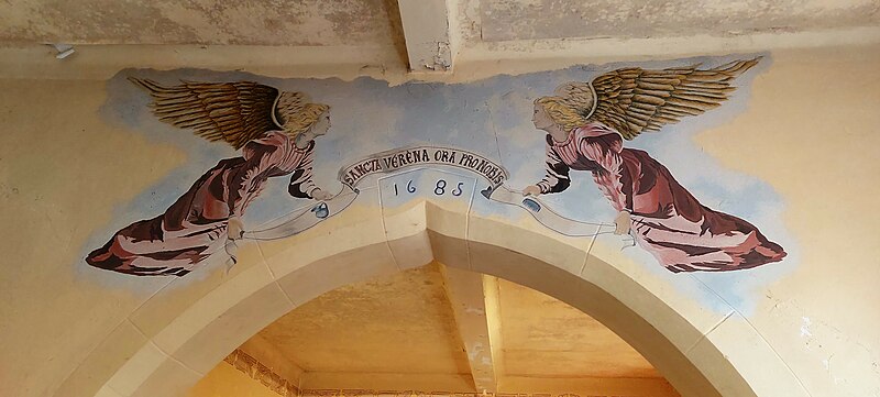 L'entrée de l'ermitage, datée 1745, est ornée d'un angelot baroque et d'une Vierge en terre cuite attribuée à la même époque. À l'intérieur, l'arche du chœur en gros moellons de grès rose, taillée en dos d'âne, conserve le millésime 1685 qui marque la dernière restructuration majeure ; le voûtement primitif du chœur a peut‑être été supprimé et remplacé par un plafond. Une colonne gothique centrale, dont la décoration ancienne a été retrouvée et fidèlement restituée, soutient un plafond plat en torchis sur piécettes de chêne et plâtrage.