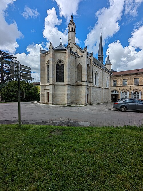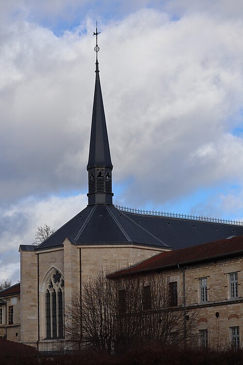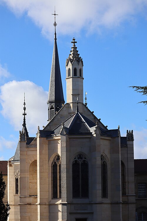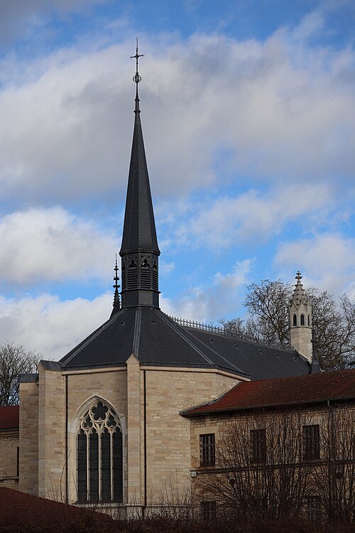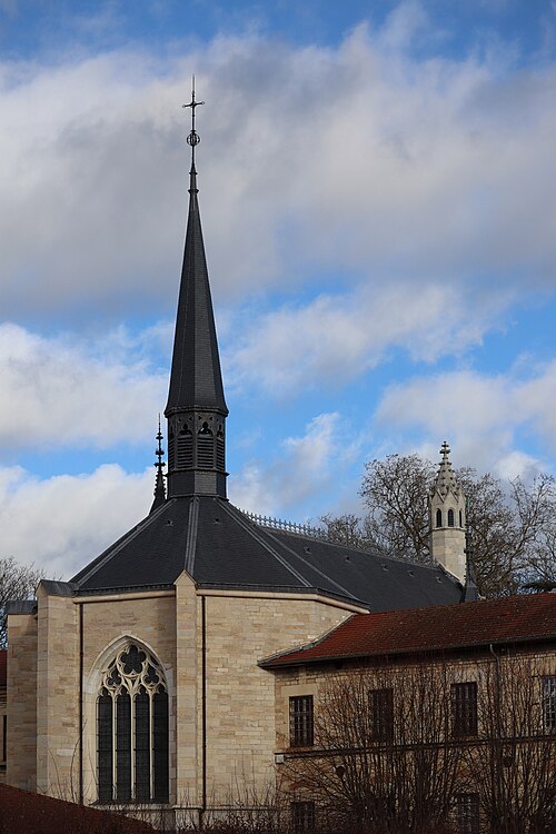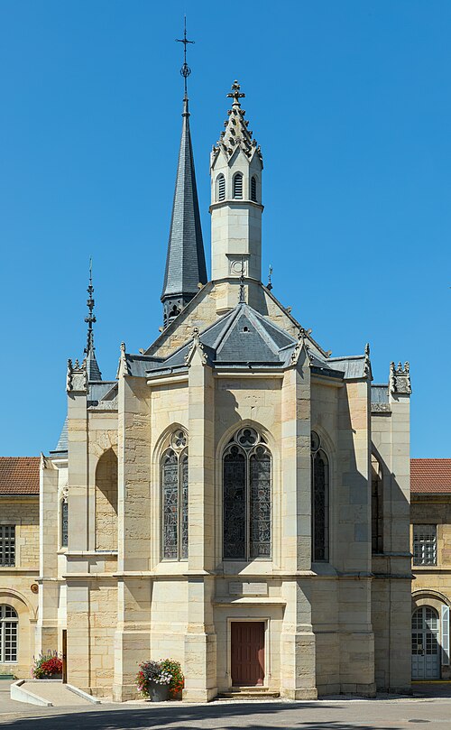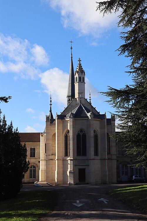 La chartreuse de la Sainte-Trinité de Champmol, fondée par Philippe le Hardi à la fin du XIVe siècle sur un domaine acquis en 1378, devint un foyer important de la sculpture et de la peinture bourguignonnes. Les ducs de Bourgogne y firent venir des artistes renommés — Jean de Marville, Claus Sluter, Claus de Werve, Jean de Beaumetz, Melchior Broederlam, Jacques de Baerze, entre autres — pour décorer l'église et les bâtiments conventuels et y établir une nécropole ducale. À la Révolution la communauté fut chassée, les bâtiments vendus et l'église partiellement démolie ; plusieurs œuvres furent dispersées dans des musées. Des vestiges majeurs subsistent : le portail de la chapelle, la tourelle d'escalier de l'oratoire ducal, deux puits dont le célèbre Puits de Moïse réalisé par Claus Sluter et son atelier, l'hôtellerie et deux portails datés des XVe et XVIIIe siècles. Le département de la Côte-d'Or acheta le site en 1833 pour y établir un asile d'aliénés, projet rendu impératif par la loi du 30 juin 1838 et confié à l'architecte départemental Pierre‑Paul Petit. Le plan, daté du 27 octobre 1838 et approuvé le 17 juin 1839, s'articule en U sur l'emplacement approximatif du grand cloître, en conservant le puits de Moïse au centre et en réutilisant le portail ancien pour la chapelle latérale. Les constructions principales furent entreprises en 1839, l'adjudication ayant eu lieu le 19 décembre 1839, et l'établissement accueillit ses premiers patients en janvier 1843 ; la chapelle néo-gothique fut bénie en 1844. Conçu pour 200 à 220 malades répartis en catégories et séparés par sexe, l'asile comportait de longues ailes à trois niveaux organisées en quartiers, des pavillons pour les furieux et les malpropres en rez-de-chaussée, ainsi qu'un corps axial abritant cuisines et services ; des galeries grillagées permettaient au personnel de circuler et les aménagements valorisaient la végétation et l'eau pour leurs effets apaisants. Pour des raisons budgétaires, certains bâtiments prévus (morgue, amphithéâtre, partie de l'administration) ne furent pas réalisés et l'administration fut logée dans l'ancienne hôtellerie. Après la démission de Pierre‑Paul Petit en 1846, son successeur Charles Suisse fit construire en 1846-1847 des corps de bâtiment perpendiculaires au sud des ailes et un mur de clôture flanqué d'une porte et de pavillons ; divers équipements (bains, buanderie) amenèrent l'achèvement des installations initiales vers 1850. L'augmentation rapide du nombre de malades entraîna la construction ultérieure de pavillons isolés, notamment des pensionnats pour femmes et hommes entre 1867 et 1875 et des quartiers pour « idiots et gâteux » en 1874-1875, puis la création en 1939 d'un centre de neuropsychiatrie militaire. L'ensemble hospitalier, relativement préservé jusque dans les années 1950, a depuis subi des destructions et remaniements (démolition de galeries de liaison, transformations de bâtiments de services, cloisonnement des dortoirs) et un développement vers l'ouest. Le parti architectural des bâtiments asilaires, d'allure austère, contraste avec la chapelle néo-gothique qui intègre des éléments anciens sauvés des destructions antérieures et protège le portail médiéval sous un porche couvert. Le Puits de Moïse, classé monument historique, demeure abrité sous son édicule et conserve des prophètes en ronde-bosse et des anges attribués à l'atelier de Claus Sluter et Claus de Werve, avec des traces de polychromie. Aujourd'hui, les bâtiments de l'ancienne chartreuse accueillent un centre hospitalier spécialisé en psychiatrie et santé mentale, tandis que les œuvres autrefois conservées sur le site sont réparties dans plusieurs musées, témoignant de l'importance artistique et historique du lieu.
