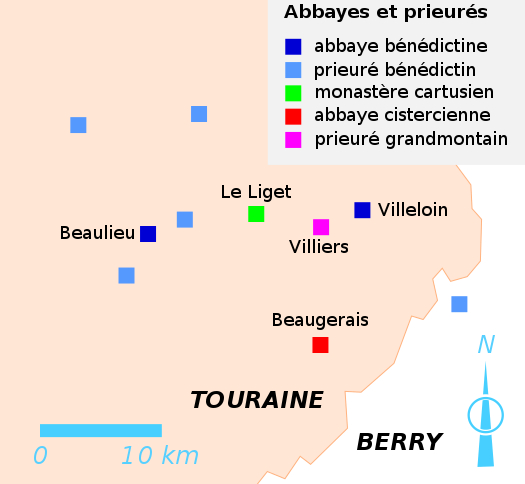 La chartreuse du Liget est un ancien monastère chartreux situé à Chemillé-sur-Indrois, en limite de la forêt de Loches, dans le département d'Indre-et-Loire. Elle a été fondée par Henri II Plantagenêt, qui acheta le lieu dit Liget en 1178 et le donna aux Chartreux ; la fondation fut confirmée par Jean en 1199 et par Saint-Louis en 1234. Unique chartreuse en Touraine, elle comprend traditionnellement une maison haute au Liget, une maison basse dite la Corroirie, et une chapelle isolée dans une clairière, la chapelle Saint-Jean. À la fin du Moyen Âge et à l'époque moderne la communauté prit une grande importance, regroupant jusqu'à une vingtaine de pères et contrôlant plusieurs milliers d'hectares de terres. Le domaine s'est développé au-delà du « désert » initial grâce à des donations seigneuriales et royales, et la Corroirie exerçait des fonctions seigneuriales avec droits de justice. La chartreuse subit des dommages pendant la guerre de Cent Ans et les guerres de Religion ; le grand cloître fut reconstruit en 1787 puis presque entièrement détruit lors de la Révolution. En 1790-1791 les onze religieux encore présents furent chassés ; la bibliothèque de la maison haute, riche de 6 900 volumes, ainsi que le mobilier et les œuvres d'art furent dispersés et les bâtiments vendus comme biens nationaux. Après de nombreuses ventes et démolitions, la famille de Marsay acquit des parties du domaine au XIXe siècle, reconstitua largement le patrimoine au fil du temps et restaure plusieurs bâtiments ; au XXIe siècle la propriété est partagée entre des descendants et la Corroirie conserve une configuration médiévale notable. Les protections au titre des monuments historiques ont été successives entre 1862 et 2015, la maison haute, la Corroirie et leurs abords étant par ailleurs inclus dans un site classé dès 1947. Sur le plan architectural, la chartreuse se présente encore aujourd'hui sous la forme d'enceintes successives : une grande enceinte à quatre tourelles d'angle en encorbellement et un portail monumental du XVIIIe siècle donnent accès à des cours et bâtiments. Des éléments significatifs subsistent : les ruines de l'église abbatiale romane dont il ne reste que la nef, des vestiges du grand cloître — seule la galerie occidentale voûtée a été conservée — et plusieurs constructions modernes des XVIIIe et XIXe siècles. L'église conserve des consoles attestant d'une élévation en voûtes et des poteries acoustiques insérées dans les murs, tandis que le chevet et le clocher ont disparu. Le grand cloître, rectangulaire, abritait les cellules individuelles des pères sur son pourtour ; ces cellules et la plupart des ailes nord et sud ont disparu, mais on distingue encore des guichets et des consoles inachevées. La Corroirie, distante d'environ un kilomètre, présente une porte fortifiée du XVe siècle, une chapelle remaniée aux XVe-XVIe siècles et une tourelle-prison ; ses bâtiments agricoles et de service sont largement préservés. La chapelle Saint-Jean, de plan essentiellement circulaire et datée du XIIe siècle, conserve une rotonde de 7 m de diamètre intérieur et une coupole haute d'environ 6 m ; son décor de fresques, principalement mariales, a partiellement survécu et a fait l'objet de travaux de restauration. Divers communs, fours à pain et ateliers subsistent autour des terrasses et du cours d'eau qui alimentait jardins et viviers. Plusieurs œuvres et objets provenant du Liget figurent aujourd'hui dans des églises et musées locaux, tandis que des études anciennes et récentes ont documenté l'histoire et l'architecture de l'ensemble, contribuant à sa connaissance et à sa conservation.