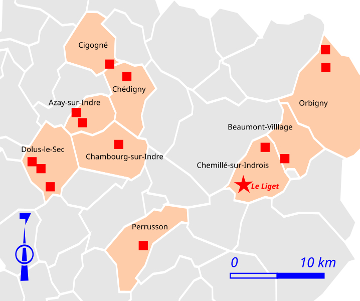 Les cinq portails et les deux pavillons situés de part et d'autre du second portail (cad. C 448) : classement par arrêté du 13 mars 1972 ; Le site historique, les bâtiments non classés et le sol des parcelles de la Chartreuse du Liget, au lieu-dit "Les Chartreux", conservés à l'intérieur des murs de clôture, en totalité, tels qu'ils sont délimités par un trait rouge sur le plan annexé à l'arrêté. Cet ensemble figure au cadastre section C parcelles n° 447, 450 à 455, 458, 459, 558 : inscription par arrêté du 26 janvier 2015