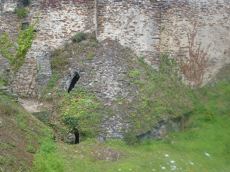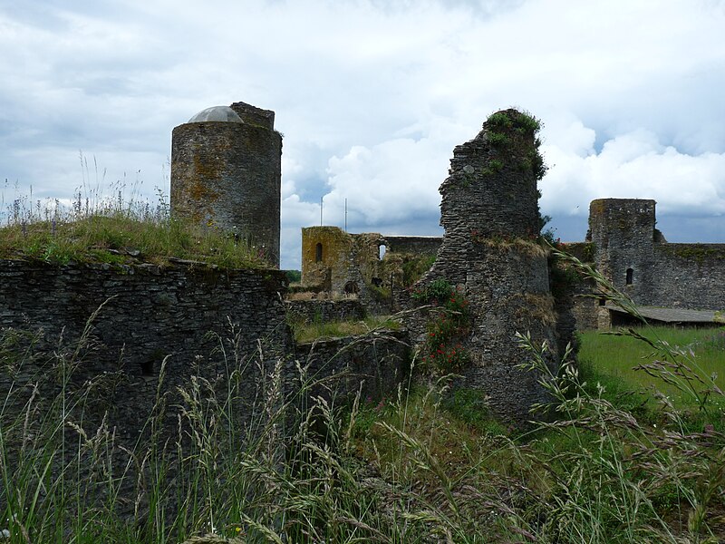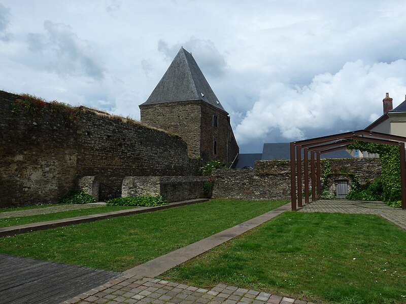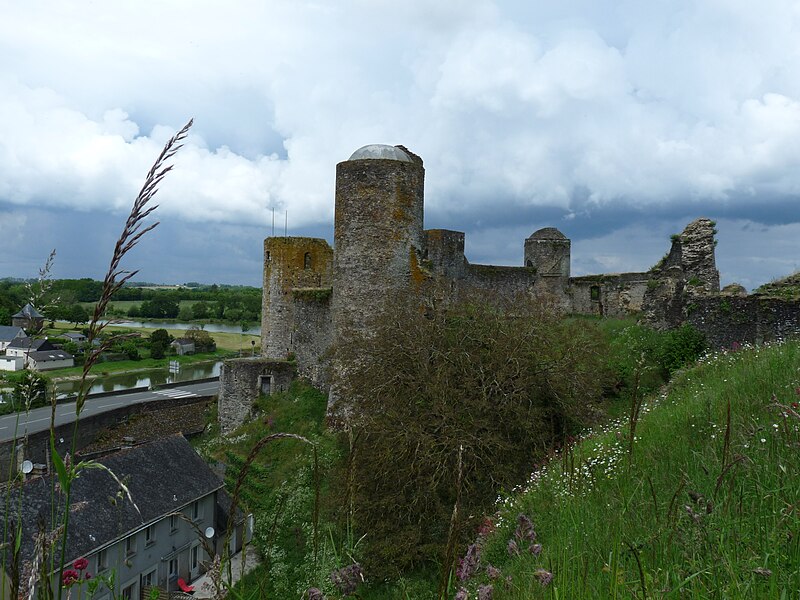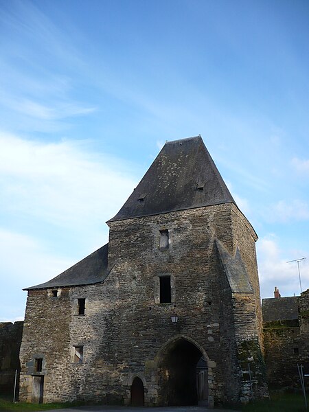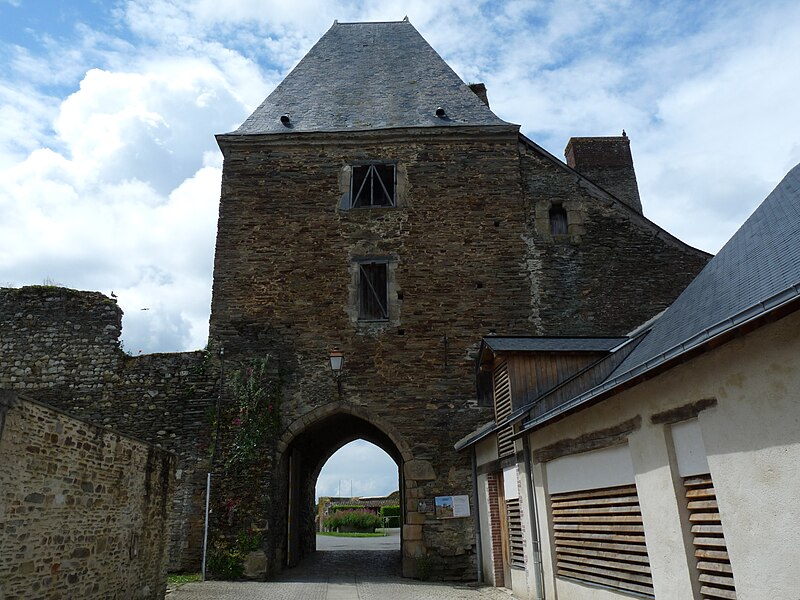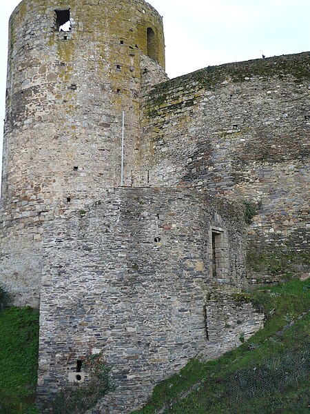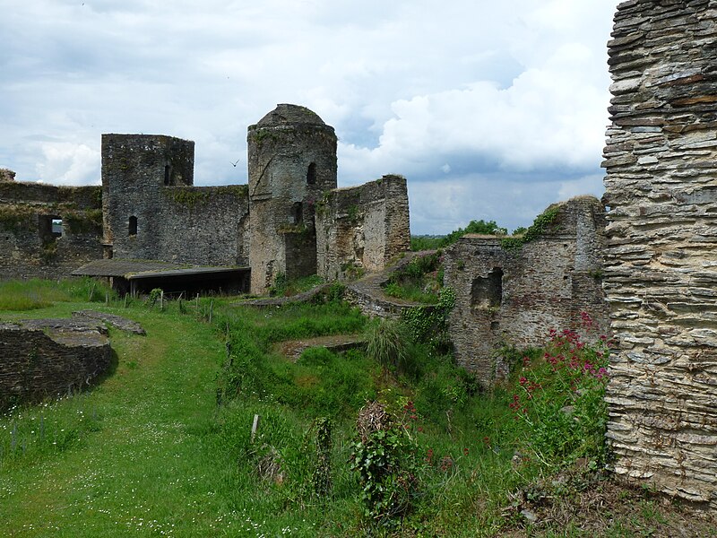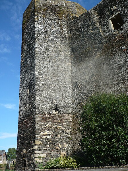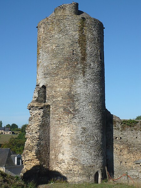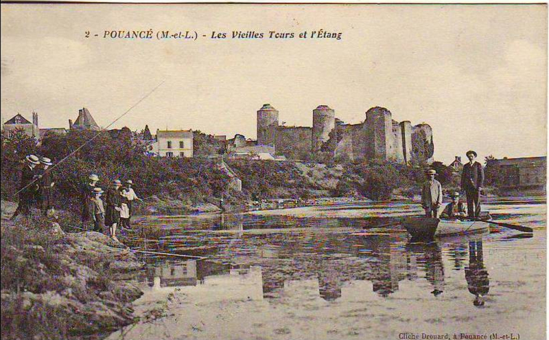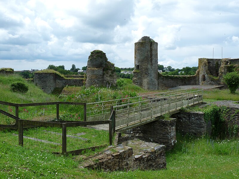 Le château de Pouancé, situé aux confins des Marches de Bretagne et de l'Anjou, est une forteresse communale qui couvre environ trois hectares et fut longtemps considéré comme la « seconde forteresse de l'Anjou ». Le site, implanté sur un surplomb schisteux dominant l'étang de Saint-Aubin et la Verzée, est fortifié au moins depuis la fin du haut Moyen Âge, la première mention du château figurant dans le cartulaire de Carbay pour la période 1049-1060. Des fragments de sarcophages découverts dans les murs d'églises voisines attestent l'existence d'implantations antérieures à la construction de l'enceinte. La forteresse s'est développée entre le XIIe et le XVe siècle avec l'édification progressive de tours et de courtines, sans qu'une motte soit clairement identifiée en amont. De la fin du XIIe ou du début du XIIIe siècle datent notamment la tour Saint-Aubin, la tour pointue et les vestiges de la tour du moulin. Entre 1371 et 1379, Pierre II de Valois fit construire la Grosse Tour et poser des mâchicoulis, et au XVe siècle les défenses furent adaptées à l'introduction de l'artillerie, avec l'érection de nouvelles structures défensives comme la tour heptagonale, les moineaux, la caponnière et un bastion. Le château fut le théâtre de nombreux sièges et combats, notamment pendant la guerre de Cent Ans et les conflits entre la France et la Bretagne, où il revêtit un rôle stratégique aux XVe et XVIe siècles. En 1432, il résista à un siège breton et anglais qui mobilisa plusieurs milliers d'hommes et des pièces d'artillerie, puis fut de nouveau menacé par une armée anglaise en 1443. Les affrontements franco-bretons de la fin du XVe siècle entraînèrent d'importants réaménagements défensifs et confirmèrent la place du château dans le système de défense du royaume contre le duché de Bretagne. À partir du milieu du XVIe siècle la seigneurie passa à la maison de Cossé-Brissac; la forteresse participa aux troubles des guerres de Religion et connut des occupations et des restitutions au cours des années 1590. Le château perdit progressivement sa fonction résidentielle et, aux XVIIe et XVIIIe siècles, certaines salles restèrent toutefois habitées tandis que d'autres parties tombaient en ruine ou étaient démantelées par les habitants. Des destructions, comblements et constructions d'habitations dans la haute-cour accentuèrent la dégradation jusqu'au XIXe siècle, même si le site fut déjà admiré comme « belle ruine féodale ». Au XXe siècle, des effondrements importants eurent lieu, une école privée fut installée contre la muraille nord et le site fut classé au titre des monuments historiques en 1926, puis relevé et sondé par les services des Monuments historiques. À partir des années 1960 un mouvement de sauvegarde s'organisa autour de Louis Bessière, avec des opérations de débroussaillage et de fouilles menées par des chantiers de jeunes, qui mirent au jour des éléments architecturaux, des boulets d'artillerie et une monnaie. Après plusieurs campagnes de restauration et de consolidation dans les années 1970, la propriété passa à la commune et l'association C.H.A.M. prit en charge fouilles et travaux à partir de 1981, puis fut remplacée par d'autres équipes de bénévoles dans les années 1990. Des sondages archéologiques et des opérations de dégagement menés dans les années 1990 ont révélé des piles de passerelle, la tour nord du châtelet, le moineau nord, des piles de la passerelle et des traces d'aménagements des fossés, mais le site n'a pas encore fait l'objet d'une étude archéologique exhaustive. Le château est aujourd'hui propriété communale, géré pour les visites par l'Office de Tourisme de l'Anjou bleu; il est ouvert au public en saison et sur réservation hors saison, avec des visites guidées d'environ une heure. Implanté sur un promontoire rocheux, l'ensemble comprend une enceinte ovale flanquée de six tours cylindriques, une basse et une haute cour séparées par des fossés secs qui ont été remblayés aux XIXe–XXe siècles. L'entrée vers la basse-cour se fait par la tour-porche du XVe siècle, agrandie au XVIIe siècle et transformée en logements, tandis que l'accès à la haute-cour se faisait par un châtelet à deux tours en « U » doté d'une passerelle et de piles successivement transformées en culées. Deux poternes percées dans l'enceinte donnaient accès aux fossés, la poterne sud, bien conservée, présente une herse manœuvrable depuis une salle de manœuvre et plusieurs dispositifs de liaison avec les salles de tir, tandis que la poterne nord a été condamnée au XVe siècle par la construction d'un moineau. Les tours se succèdent du nord au sud : la tour du Moulin (partiellement effondrée), la tour Saint-Antoine (probablement XIIIe siècle) avec cinq meurtrières et un dôme, la tour Heptagonale (XVe siècle) munie d'une salle basse pour couleuvrines et d'ouvertures pour l'artillerie, la Grosse Tour (probablement XIVe siècle) à plan circulaire au rez-de-chaussée et heptagonal à l'étage, la tour de la Dame Blanche (fin XIIe–XIIIe siècle) et la tour Criminelle, effondrée en 1936. Le grand logis, découvert lors de fouilles, est un bâtiment rectangulaire à un étage avec une cheminée centrale, des fenêtres à coussièges et un sol carrelé conservé, tandis qu'une vaste glacière voûtée creusée sous le logis est accessible par un couloir voûté. Dans la basse-cour subsistent les restes d'un bastion à plusieurs niveaux desservis par un escalier à vis, des moineaux protégeant les fossés et une caponnière accolée à la Grosse Tour, qui comportait plusieurs ouvertures de tir et reliait la poterne de la Dame Blanche en chicane. Malgré les travaux de consolidation et les études récentes, de nombreuses questions demeurent sur l'organisation et l'évolution du site, dont la connaissance s'est pourtant améliorée grâce à des rech