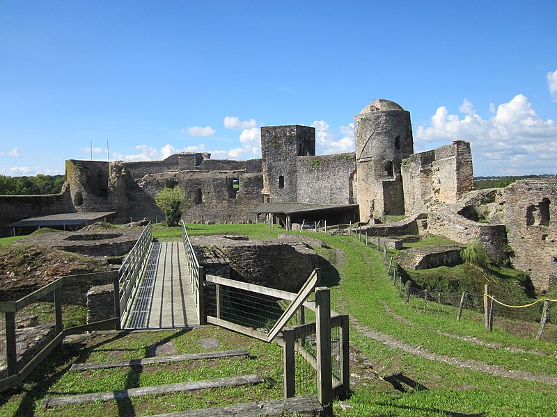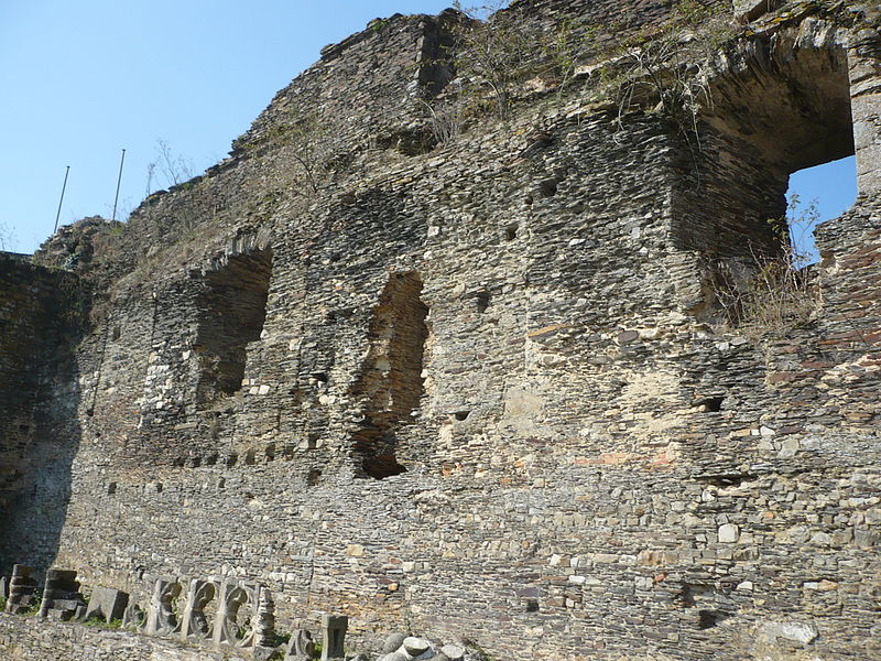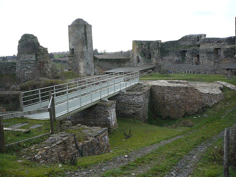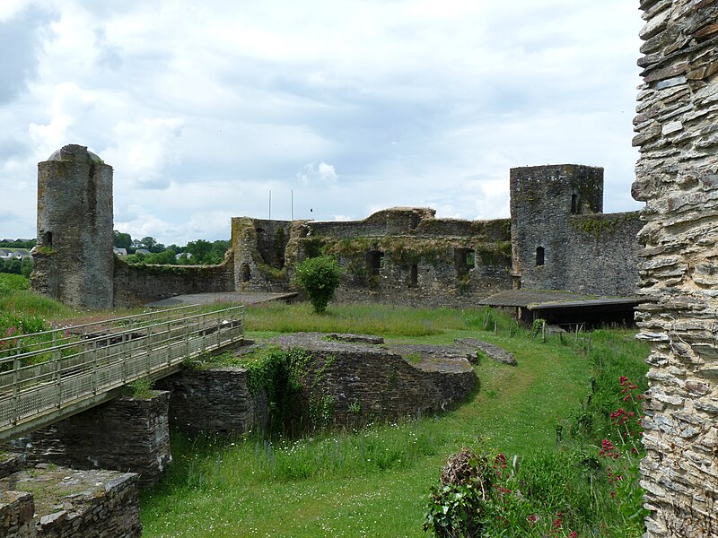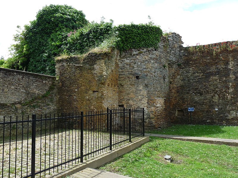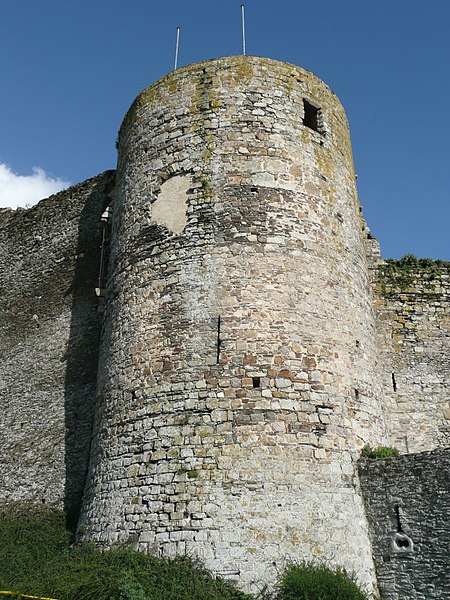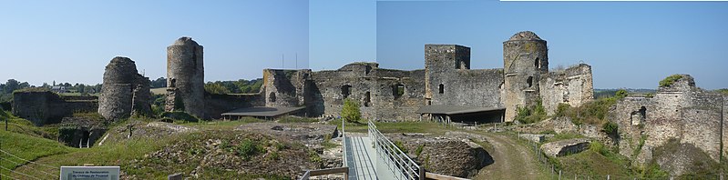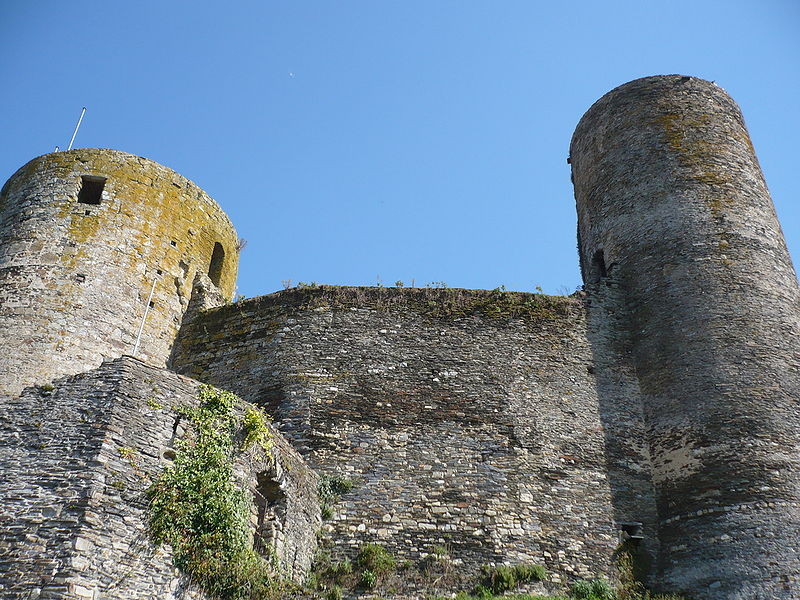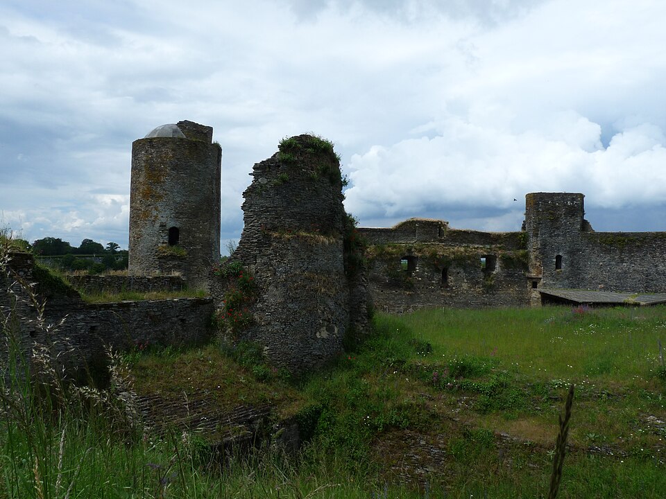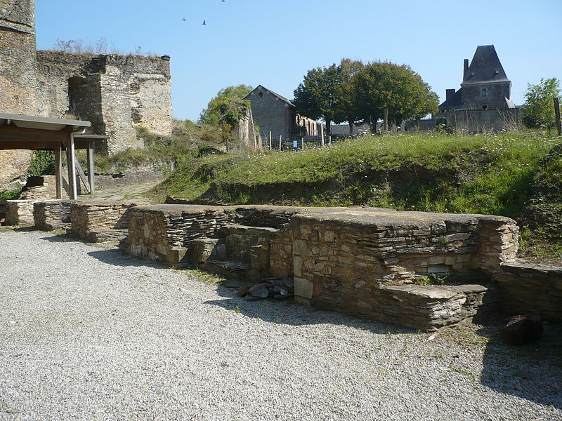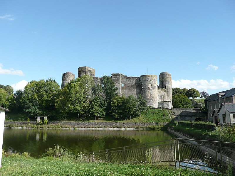 Le château de Pouancé, situé aux confins des Marches de Bretagne et de l'Anjou, est une forteresse communale qui couvre environ trois hectares et fut longtemps considéré comme la « seconde forteresse de l'Anjou ». Le site, implanté sur un surplomb schisteux dominant l'étang de Saint-Aubin et la Verzée, est fortifié au moins depuis la fin du haut Moyen Âge, la première mention du château figurant dans le cartulaire de Carbay pour la période 1049-1060. Des fragments de sarcophages découverts dans les murs d'églises voisines attestent l'existence d'implantations antérieures à la construction de l'enceinte. La forteresse s'est développée entre le XIIe et le XVe siècle avec l'édification progressive de tours et de courtines, sans qu'une motte soit clairement identifiée en amont. De la fin du XIIe ou du début du XIIIe siècle datent notamment la tour Saint-Aubin, la tour pointue et les vestiges de la tour du moulin. Entre 1371 et 1379, Pierre II de Valois fit construire la Grosse Tour et poser des mâchicoulis, et au XVe siècle les défenses furent adaptées à l'introduction de l'artillerie, avec l'érection de nouvelles structures défensives comme la tour heptagonale, les moineaux, la caponnière et un bastion. Le château fut le théâtre de nombreux sièges et combats, notamment pendant la guerre de Cent Ans et les conflits entre la France et la Bretagne, où il revêtit un rôle stratégique aux XVe et XVIe siècles. En 1432, il résista à un siège breton et anglais qui mobilisa plusieurs milliers d'hommes et des pièces d'artillerie, puis fut de nouveau menacé par une armée anglaise en 1443. Les affrontements franco-bretons de la fin du XVe siècle entraînèrent d'importants réaménagements défensifs et confirmèrent la place du château dans le système de défense du royaume contre le duché de Bretagne. À partir du milieu du XVIe siècle la seigneurie passa à la maison de Cossé-Brissac; la forteresse participa aux troubles des guerres de Religion et connut des occupations et des restitutions au cours des années 1590. Le château perdit progressivement sa fonction résidentielle et, aux XVIIe et XVIIIe siècles, certaines salles restèrent toutefois habitées tandis que d'autres parties tombaient en ruine ou étaient démantelées par les habitants. Des destructions, comblements et constructions d'habitations dans la haute-cour accentuèrent la dégradation jusqu'au XIXe siècle, même si le site fut déjà admiré comme « belle ruine féodale ». Au XXe siècle, des effondrements importants eurent lieu, une école privée fut installée contre la muraille nord et le site fut classé au titre des monuments historiques en 1926, puis relevé et sondé par les services des Monuments historiques. À partir des années 1960 un mouvement de sauvegarde s'organisa autour de Louis Bessière, avec des opérations de débroussaillage et de fouilles menées par des chantiers de jeunes, qui mirent au jour des éléments architecturaux, des boulets d'artillerie et une monnaie. Après plusieurs campagnes de restauration et de consolidation dans les années 1970, la propriété passa à la commune et l'association C.H.A.M. prit en charge fouilles et travaux à partir de 1981, puis fut remplacée par d'autres équipes de bénévoles dans les années 1990. Des sondages archéologiques et des opérations de dégagement menés dans les années 1990 ont révélé des piles de passerelle, la tour nord du châtelet, le moineau nord, des piles de la passerelle et des traces d'aménagements des fossés, mais le site n'a pas encore fait l'objet d'une étude archéologique exhaustive. Le château est aujourd'hui propriété communale, géré pour les visites par l'Office de Tourisme de l'Anjou bleu; il est ouvert au public en saison et sur réservation hors saison, avec des visites guidées d'environ une heure. Implanté sur un promontoire rocheux, l'ensemble comprend une enceinte ovale flanquée de six tours cylindriques, une basse et une haute cour séparées par des fossés secs qui ont été remblayés aux XIXe–XXe siècles. L'entrée vers la basse-cour se fait par la tour-porche du XVe siècle, agrandie au XVIIe siècle et transformée en logements, tandis que l'accès à la haute-cour se faisait par un châtelet à deux tours en « U » doté d'une passerelle et de piles successivement transformées en culées. Deux poternes percées dans l'enceinte donnaient accès aux fossés, la poterne sud, bien conservée, présente une herse manœuvrable depuis une salle de manœuvre et plusieurs dispositifs de liaison avec les salles de tir, tandis que la poterne nord a été condamnée au XVe siècle par la construction d'un moineau. Les tours se succèdent du nord au sud : la tour du Moulin (partiellement effondrée), la tour Saint-Antoine (probablement XIIIe siècle) avec cinq meurtrières et un dôme, la tour Heptagonale (XVe siècle) munie d'une salle basse pour couleuvrines et d'ouvertures pour l'artillerie, la Grosse Tour (probablement XIVe siècle) à plan circulaire au rez-de-chaussée et heptagonal à l'étage, la tour de la Dame Blanche (fin XIIe–XIIIe siècle) et la tour Criminelle, effondrée en 1936. Le grand logis, découvert lors de fouilles, est un bâtiment rectangulaire à un étage avec une cheminée centrale, des fenêtres à coussièges et un sol carrelé conservé, tandis qu'une vaste glacière voûtée creusée sous le logis est accessible par un couloir voûté. Dans la basse-cour subsistent les restes d'un bastion à plusieurs niveaux desservis par un escalier à vis, des moineaux protégeant les fossés et une caponnière accolée à la Grosse Tour, qui comportait plusieurs ouvertures de tir et reliait la poterne de la Dame Blanche en chicane. Malgré les travaux de consolidation et les études récentes, de nombreuses questions demeurent sur l'organisation et l'évolution du site, dont la connaissance s'est pourtant améliorée grâce à des rech