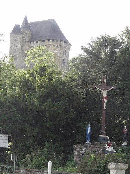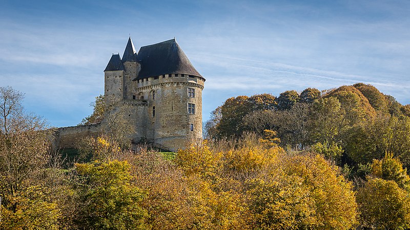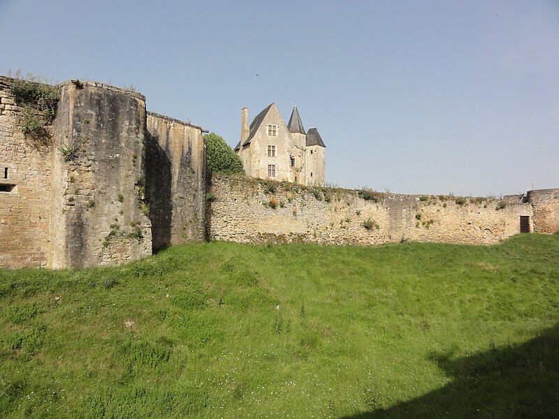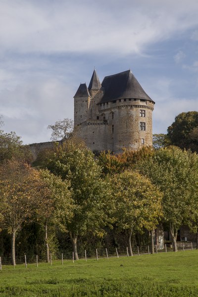 Les aménagements réalisés à la fin du Moyen Âge traduisent un glissement vers un usage plus résidentiel et symbolique du château : larges fenêtres à croisées et décors sculptés indiquent un souci de confort et d’apparat, tandis que certaines ouvertures défensives, comme de longues archères, semblent relever autant de la symbolique que d’une efficacité militaire réelle face à l’artillerie. Les tours, souvent érigées comme signes de prestige, présentent peu de dispositifs défensifs sophistiqués ; la tour carrée du logis comporte de petites pièces éclairées par des ouvertures chanfreinées, un escalier en vis de pierre et se termine par une flèche d’ardoise et une partie polygonale dotée d’une bretèche dont la fonction militaire effective fait l’objet d’interrogations. Un souterrain long de 300 mètres mettrait en communication la motte féodale avec une maison de la ville dite « Auberge de la Tête Noire ».