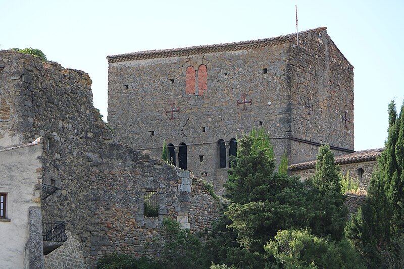 Le château de Pieusse, situé sur la commune de Pieusse près de Limoux (Aude), est une propriété privée et n’est pas ouvert au public. Le castrum de Pieusse est mentionné dès 1119 ; il était le siège d’une baronnie comprenant Alaigne et Routier, et la seigneurie relevait de l’archevêque de Narbonne, détenteur de la haute, moyenne et basse justice. En 1229, sur ordre de Saint-Louis, Guy de Lévis assigne Pieusse aux archevêques de Narbonne, qui en conservent la seigneurie jusqu’à la Révolution. Vendu comme bien national en 1791, le château devint d’abord une simple habitation puis une dépendance agricole. Selon un autre récit, le château aurait été édifié vers 1140–1145 par les comtes de Foix sous le règne de Louis VII. D’après un document de l’Inquisition, il aurait accueilli en 1225 un concile cathare rassemblant une centaine de parfaits présidés par Guilhabert de Castres, au cours duquel fut décidée la création de l’évêché du Razès et Benoît de Termes y aurait été ordonné évêque. De 1764 à 1790, le château dépendait de monseigneur Dillon, archevêque de Narbonne et dernier président des États généraux du Languedoc. L’ensemble se présente sur un plan rectangulaire, avec deux étages au‑dessus d’un rez‑de‑chaussée et un étage de comble ; la cage d’escalier, logée dans l’angle sud‑est, s’est effondrée en 1987. Le pignon ouest était éclairé, aux étages supérieurs, par deux baies géminées avec coussiège ; la façade nord, munie d’une porte haute au niveau du premier étage, s’ouvre à l’étage noble et à l’étage de comble par trois baies géminées à arcs plein cintre et colonnettes à chapiteau. L’intérieur conserve un plafond à solives dont les baguettes de couvre‑joints sont décorées de dents de scie blanches sur fond noir ; l’ensemble du plafond est peint en noir et, au sud, repose sur une sablière de plancher portée par des corbeaux. L’ébrasement intérieur d’une fenêtre nord porte des traces de graffiti. Le deuxième étage était à l’origine une grande salle unique couverte par un plafond à solives peint : le décor alterne, d’une solive à l’autre, des rangs continus et discontinus de quadrilobes, eux‑mêmes alternant avec des panneaux végétaux, sur un fond brun‑rouge ; les couleurs dominantes sont le bleu cendré, le rouge diapré, le blanc et le jaune, et le plafond est orné d’étoiles stylisées alternant avec des écus aujourd’hui entièrement délavés. Cette peinture pourrait appartenir au XIIIe siècle. La muraille nord est encore lisible et le donjon, massif et allongé, témoigne de la vocation essentiellement défensive de l’ensemble ; au premier étage du donjon se trouvent deux baies en cintre géminé aux chapiteaux sculptés et aux coussièges en pierre bien conservés, qui dominaient la vallée de l’Aude et le Razès, et une autre baie géminée plus simple est visible au deuxième étage. La cour renferme un puits susceptible d’alimenter le village en cas de siège, et des recherches ont été menées dans ce puits pour tenter de retrouver un trésor éventuellement laissé par monseigneur Dillon à la Révolution. L’ensemble du château a été classé au titre des monuments historiques le 14 février 1989.
