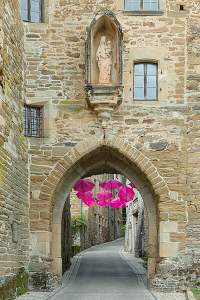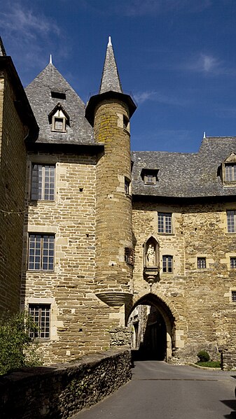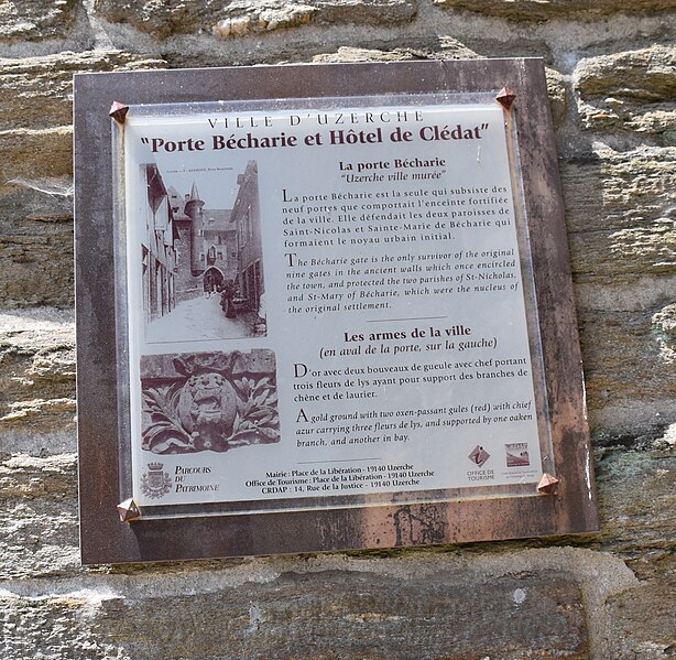 Le château Bécharie, anciennement maison Barrachaude, borde la porte de la ville. Les bâtiments semblent dater du XVIe siècle et conservent un décor peint de la fin du XVIe ou du début du XVIIe siècle ainsi que des portes en bois de la même époque. Le bâtiment de la porte est flanqué à l'est d'un vaste édifice et à l'ouest d'un corps nord qui jouxte un corps sud doté d'une tourelle en échauguette à l'angle sud-est et d'une grosse tour carrée à l'angle sud-ouest. À l'intérieur, l'ensemble a gardé son caractère d'origine, notamment une salle au rez-de-chaussée de la grosse tour carrée ornée de peintures murales. Ces peintures, figurées dans des cadres peints, représentent les douze sibylles et les douze césars, et, au-dessus, des paysages habités.