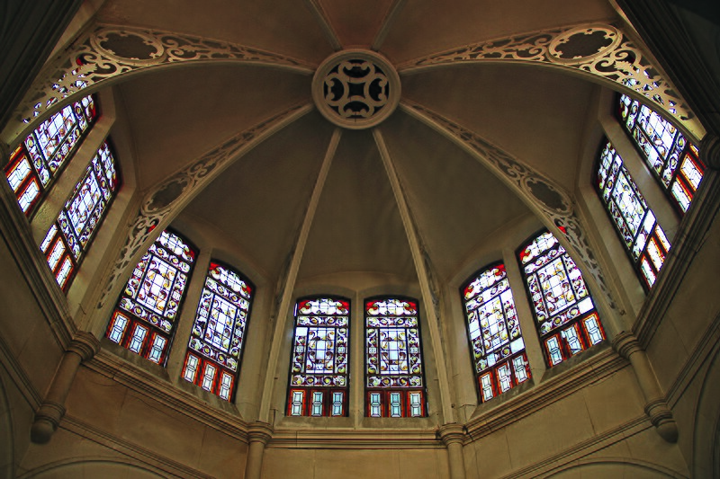 L’architecture intérieure témoigne d’une mise en scène soignée : plan carré animé par saillies, balcons et loggias, belvédère octogonal, porche et grand escalier à double révolution bordé d’une rampe en fer forgé, ainsi qu’une coupole éclairée par paires de vitraux. Les décors et matériaux d’origine — marbres variés, mosaïques, vitraux signés Eugène Oudinot de la Faverie, peintures décoratives — ont été préservés ou retrouvés et font l’objet d’inventaires et d’études. Après leur acquisition en novembre 2016, les propriétaires ont engagé une restauration minutieuse visant à restituer l’état d’origine : dégagement de sculptures et cartouches, restauration des mosaïques et des vitraux, remise en état de la toiture et de la rampe du grand escalier, reprise des parquets en marqueterie, etc. Les plans et descriptions publiés par François Roux dans l’Encyclopédie d’Architecture ainsi que des archives privées constituent des sources documentaires majeures pour la connaissance et la restauration du château.