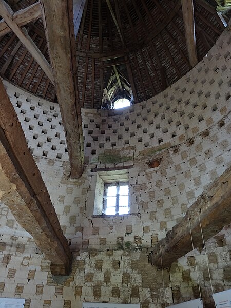 Le château de Vicques, situé avenue du château sur la commune de Vicques (Calvados), est implanté sur l'emplacement d'un château-fort du XIIe siècle construit pour la famille de Vicques. Le site est traversé par la voie romaine Jort–Exmes et par la Dives. L'édifice actuel relève d'une construction aux XVIe et XVIIe siècles ; l'ancien logis, la chapelle Notre‑Dame et le colombier datent de la fin du XVIe siècle. La chapelle est parfois datée de la fin du XVe siècle ou du XVIIe siècle, tandis que le colombier est attribué à la fin du XVIe siècle. Les communs, portés de la date de 1744, témoignent de l'importance agricole du domaine seigneurial. Le logis actuel et l'ensemble du château ont fait l'objet d'importants travaux au début du XIXe siècle. Le domaine a appartenu à la famille de Croissanville aux XVIIe et XVIIIe siècles. L'ensemble est inscrit au titre des monuments historiques depuis le 11 avril 1975 ; l'arrêté concerne la chapelle, le colombier ainsi que les façades et les toitures des communs. Le bâtiment est construit en pierre de Caen et en calcaire. Subsistent une échauguette et des éléments de machicoulis. La chapelle baroque conserve des statues polychromes des XVe et XVIe siècles, dont une Notre‑Dame placée sur la façade, ainsi qu'une clôture en bois du chœur datée du début du XVIIe siècle.