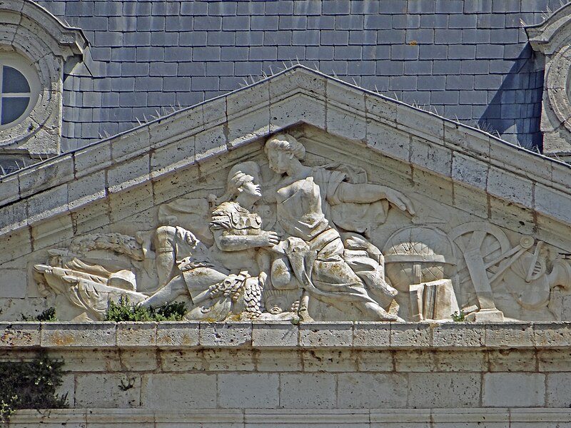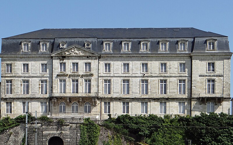 Le château d'Aiguillon se dresse place du 14-Juillet, dominé par le confluent du Lot et de la Garonne. Il s'agit d'un édifice inachevé : commencé en 1765 pour Emmanuel-Armand de Vignerot du Plessis, duc d'Aiguillon, il ne comprend que partie du corps principal et l'aile gauche de la cour d'honneur, l'aile nord n'ayant jamais été édifiée. Les façades sont percées de baies rectangulaires encadrées de chambranles moulurés ; les trumeaux portent une table saillante et le fronton de la façade postérieure est décoré d'un groupe sculpté par Roger figurant le Lot et la Garonne. D'autres frontons sculptés, allégories des Arts et des Sciences, sont l'œuvre du sculpteur bordelais Barthélemy Cabirol, rémunéré pour ces travaux en 1776. L'aménagement intérieur et la décoration ont été principalement assurés par Pierre Mollié lors de la seconde campagne de travaux, mais l'intérieur fut dévasté en 1792. Les travaux engagés à partir de 1765 ont d'abord été conduits par André Mollié et son fils Pierre, puis poursuivis sous la direction de Charles Le Roy, ingénieur des Ponts-et-Chaussées arrivé en 1771, qui a établi les plans d'ensemble et un projet d'urbanisme pour la ville ; une troisième campagne permit la construction, entre 1778 et 1780, du pavillon de la Comédie, en prolongement de l'aile sud. Le château s'inscrit dans la tradition classique française avec cour d'honneur et perspectives ouvertes sur la campagne ; il s'appuie partiellement sur des éléments plus anciens, l'ensemble ayant succédé au château du Fossat dont il reprenait l'emplacement de l'aile nord non réalisée. Avant cela, la position stratégique sur le plateau avait abrité au XIIIe siècle au moins deux fortifications, le château de Lunac et le château du Fossat, dont des vestiges médiévaux subsistaient jusque dans le premier quart du XIXe siècle avant d'être démolis ; des arcades gallo-romaines et des traces anciennes ont été signalées dans le secteur. La baronnie et le duché d'Aiguillon ont appartenu successivement à plusieurs familles nobles avant d'entrer dans la sphère des Vignerot du Plessis, Richelieu et, finalement, d'Emmanuel-Armand, commanditaire du nouveau château. Après l'émigration du dernier duc en 1792 le château devint bien national : le mobilier et la bibliothèque musicale furent triés, une partie des œuvres rejoignit les collections du futur musée d'Agen, certaines pièces furent détruites et le reste du mobilier vendu aux enchères. Au XIXe siècle, des pavillons, grilles et portails furent dispersés et le bâtiment fut adapté en magasin des tabacs en 1852 ; les derniers vestiges du château médiéval furent détruits en 1834. La commune demanda le classement du site en 1922 ; finalement, les façades et couvertures du corps principal et de l'aile gauche ainsi que la rampe en fer forgé de l'escalier furent inscrites au titre des monuments historiques par arrêté du 20 juin 1925, puis les façades et toitures des pavillons bordant la cour d'honneur par un nouvel arrêté du 4 août 1951. Restauré entre 1964 et 1966 sous la conduite de l'architecte des bâtiments de France Jean Payen, le château fut affecté au lycée Stendhal, fonction qu'il conserve depuis son inauguration.