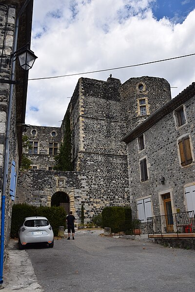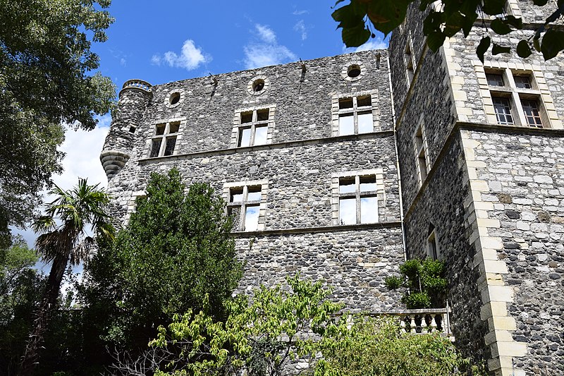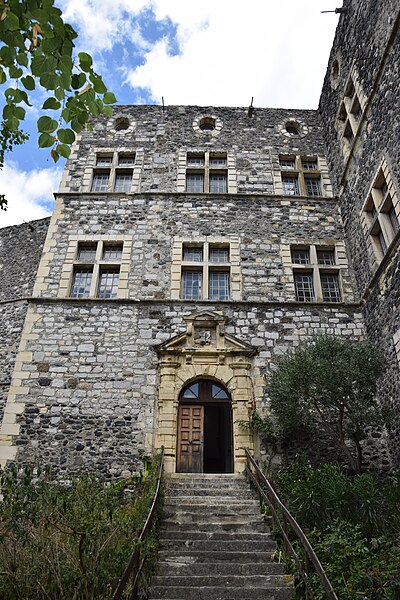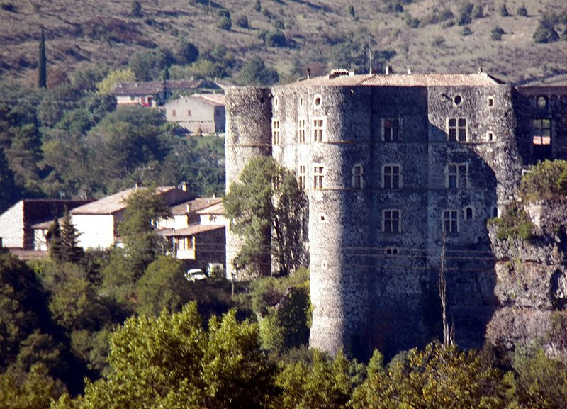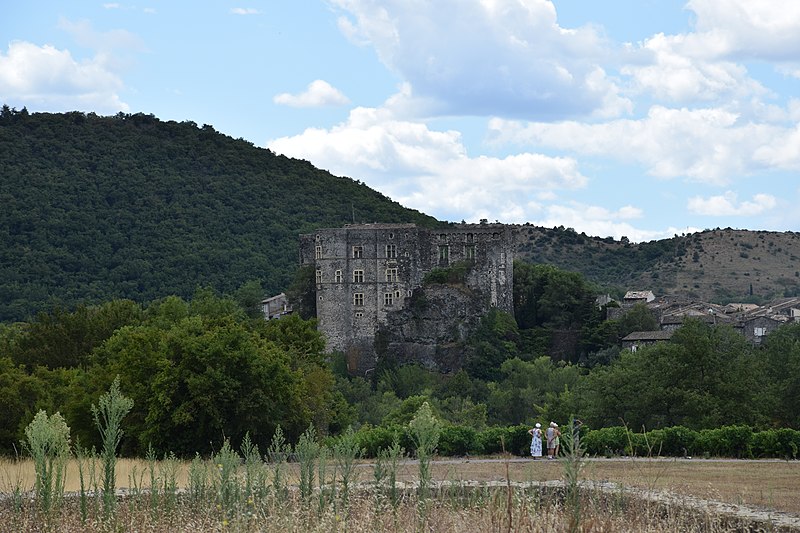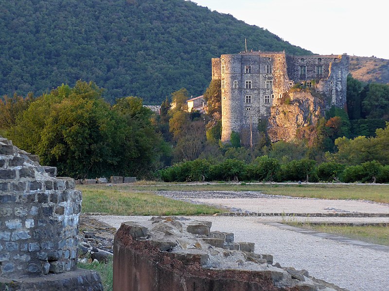 Le château d'Alba, ancien château fort dominant Alba-la-Romaine, prend probablement son origine dans un donjon élevé au XIe siècle. Les premiers seigneurs d'Aps sont attestés en 1213 et la première mention d'un château fort remonte à 1359 ; des vestiges datent encore des XVe et XVIe siècles. Au début du XVIIe siècle, la reconstruction du château est attribuée à Georges de La Beaume de Suze, qui lui donne en partie son aspect actuel et fait édifier l'extension dite « château neuf ». La seigneurie passa successivement entre plusieurs familles — d'Aps, des Deux-Chiens, des Adhémar de Grignan, puis de La Beaume de Suze et enfin de Montagut — qui marquent l'évolution de l'édifice et de sa fonction de place forte, de résidence et de symbole de prestige. À la fin de l'Ancien Régime, le château subit des violences populaires : meubles et bibliothèque sont vendus ou détruits, l'édifice est morcelé et certaines ailes s'effondrent, laissant le château partiellement ruiné à la fin du XVIIIe siècle. Au XIXe siècle, le docteur Gaillard acquiert le domaine en 1880 et aménage des intérieurs ; des travaux de restauration partielle ont lieu en 1885-1886 et la tour nord est démolie en 1896. Inscrit au titre des monuments historiques en 1939, le château fait l'objet de restaurations et de réaménagements au XXe siècle ; racheté en 1974 par le docteur Magdeleine Frimat, il est ouvert au public et accueille expositions et manifestations culturelles pendant la saison estivale. Le bâti conserve, en creux et en élévation, les traces de ses origines médiévales, des transformations de la Renaissance et des remaniements modernes, offrant un témoignage visible de son histoire pluriséculaire.