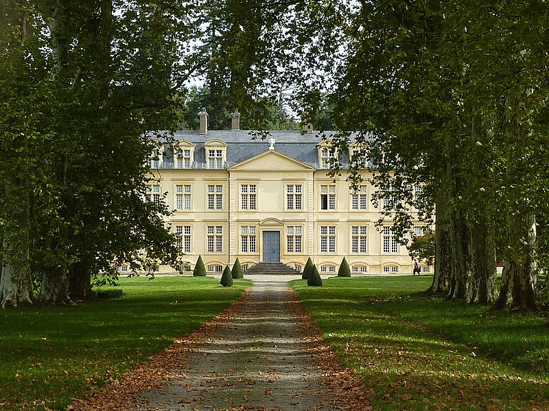Le château d'Amou, situé dans la commune éponyme des Landes, forme un ensemble composé du corps de logis, du portail d'entrée et des vastes dépendances. Construit de 1678 à 1692 d'après les plans de l'architecte Jules Hardouin-Mansart pour Léonard de Caupenne, il est resté dans la même famille en ligne directe depuis sa construction. Son architecture associe un style classique à des réminiscences du style Louis XIII et il est couronné d'un comble à la Mansart. L'intérieur conserve des décors du XVIIe siècle, avec une vaste cage d'escalier et un grand salon rythmé de pilastres cannelés. Les dépendances, qui constituent une partie intégrante du domaine, ont toujours eu et conservent une fonction d'exploitation agricole ; le château possède par ailleurs sa propre chapelle. Le portail d'entrée provient de l'abbaye de la Castelle à Duhort-Bachen ; il a été démonté, transporté et remonté en 1839. Une mosaïque gallo-romaine a été installée dans le vestibule en 1902 ; d'autres fragments de cette mosaïque ont été réutilisés dans une maison à Saint-Sever. Le château est inscrit au titre des monuments historiques : le corps de logis par arrêté du 12 octobre 1948, et les dépendances ainsi que le portail par arrêté du 18 septembre 2000.
