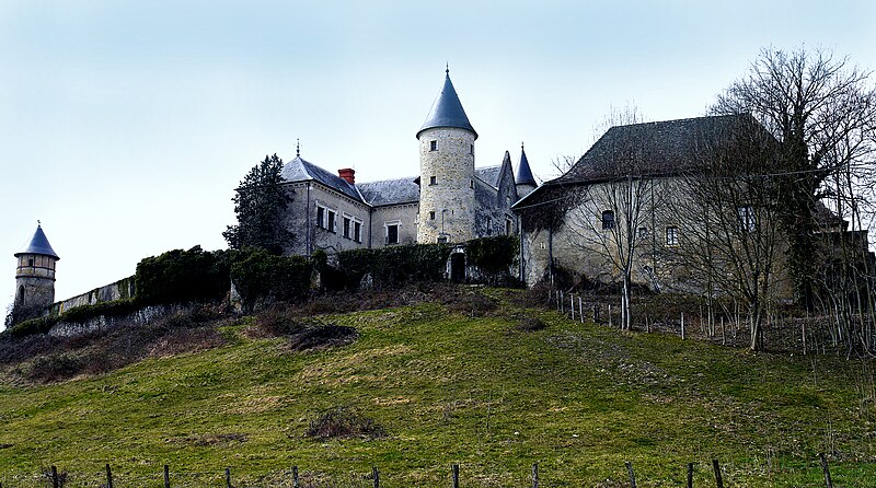 Le château d'Andert se dresse sur un coteau à 1,5 km au sud-sud-est d'Andert-et-Condon, près de la route reliant Rossillon à Belley, dans le département de l'Ain (Auvergne-Rhône-Alpes). La seigneurie est attestée dès 1180 avec les chevaliers d'Andert et passa successivement de familles locales aux maisons de Grammont, de Migieu et de Paraz. Au XVIe siècle, la seigneurie fit l'objet de partages et de transferts entre branches familiales, avec des épisodes de confiscation puis de restitution. La maison-forte d'origine, datée du XVe siècle (1461), fut transformée au XVIIe siècle en maison de plaisance, comme l'atteste la date gravée de 1655, puis remaniée au XIXe siècle, notamment en 1829 et 1867, dans un style néo-gothique. Les destructions de la Révolution provoquèrent la disparition de deux tours et du pigeonnier. Le château actuel, de plan en U, est composé de deux corps de bâtiments; la façade nord, flanquée de deux tours, est percée d'un portail monumental à bossages du XVIIe siècle, tandis que les autres façades relèvent du XIXe siècle néo-gothique. À l'intérieur, une pièce du rez-de-chaussée nord conserve une porte et une cheminée attribuées au XVe siècle; le reste de l'édifice reflète des aménagements du XIXe siècle. Le château est inscrit au titre des monuments historiques par arrêté du 17 juillet 1990.