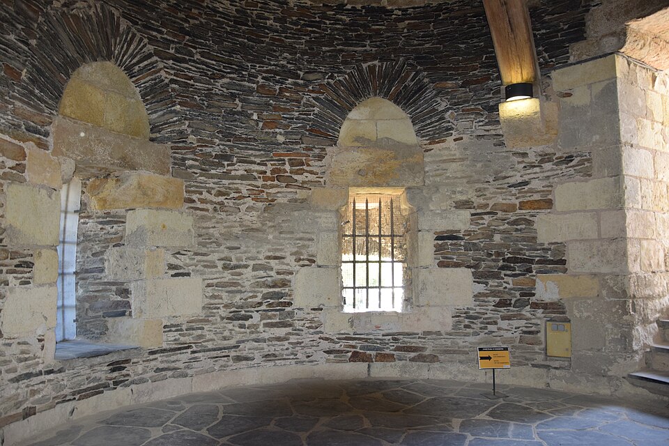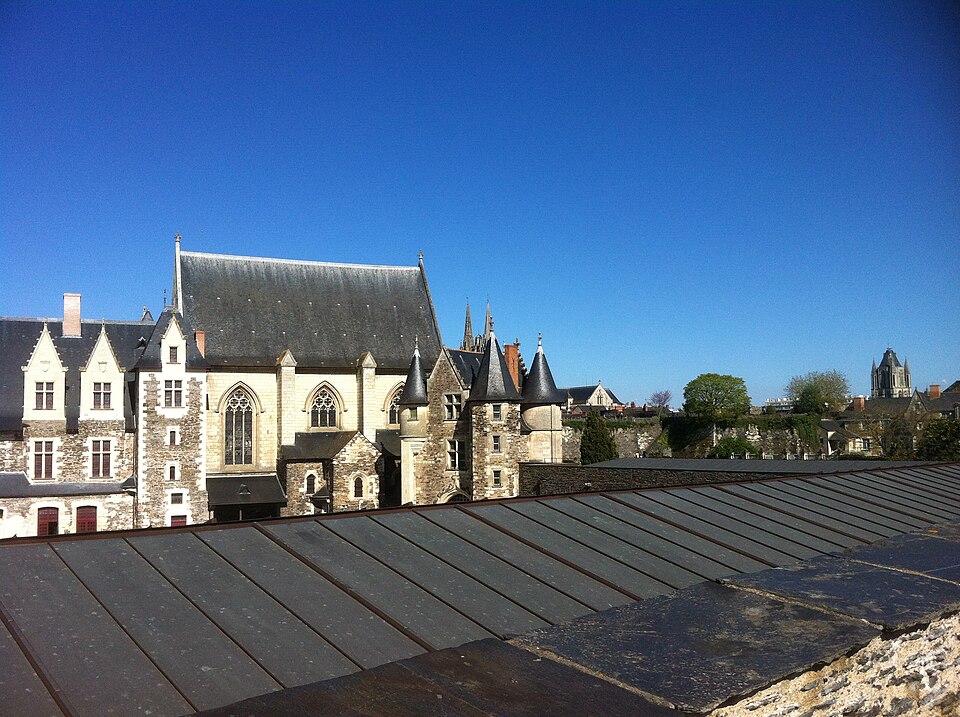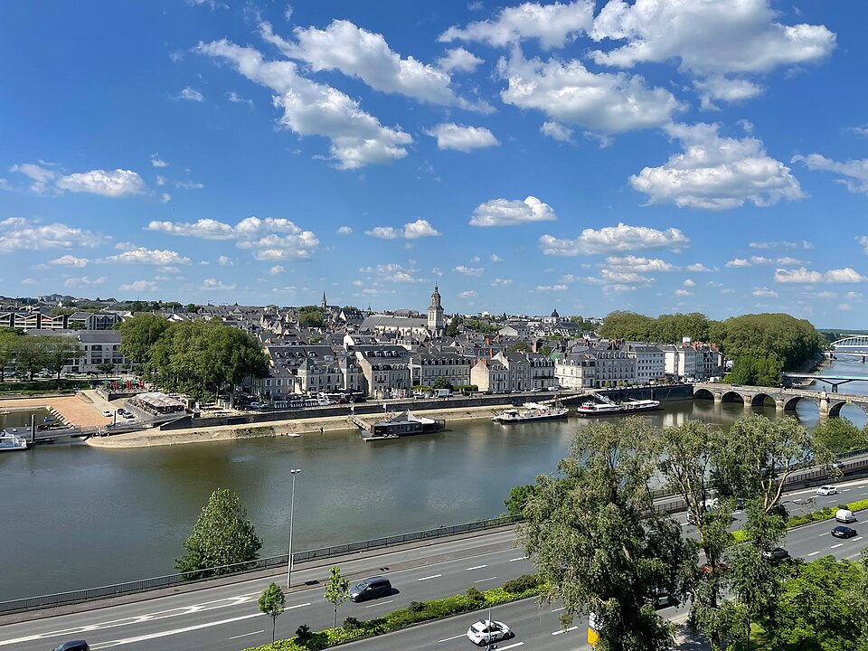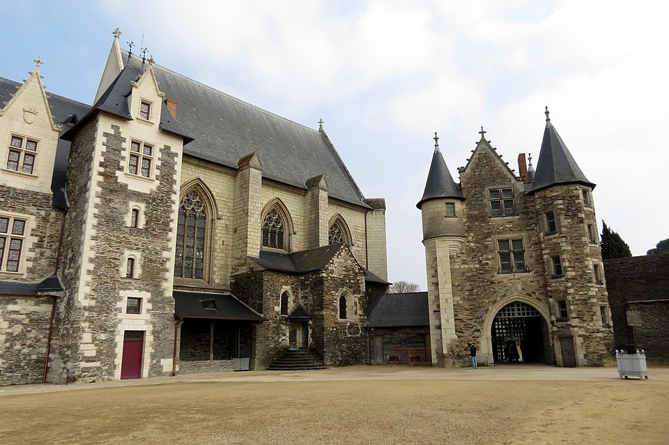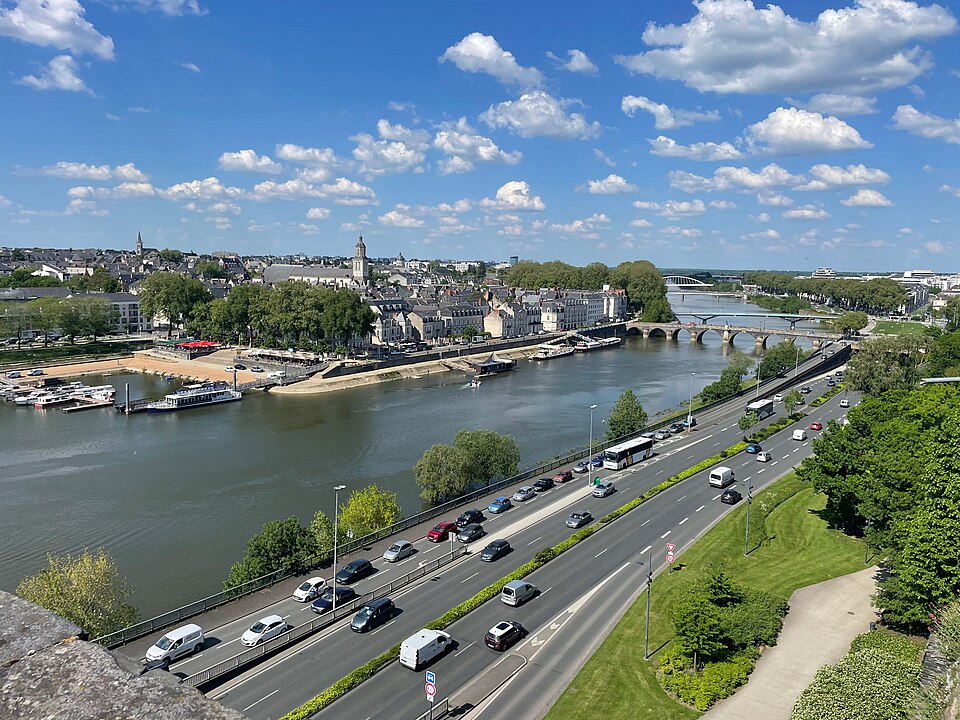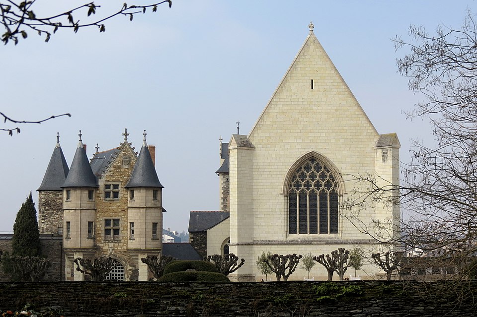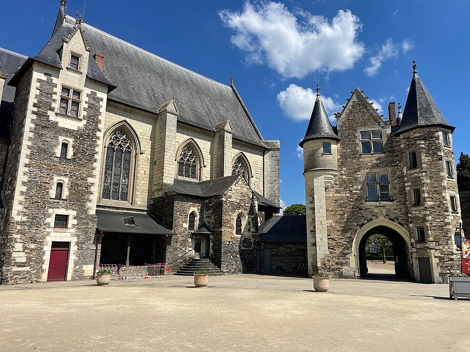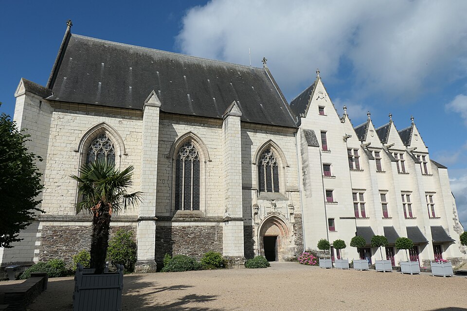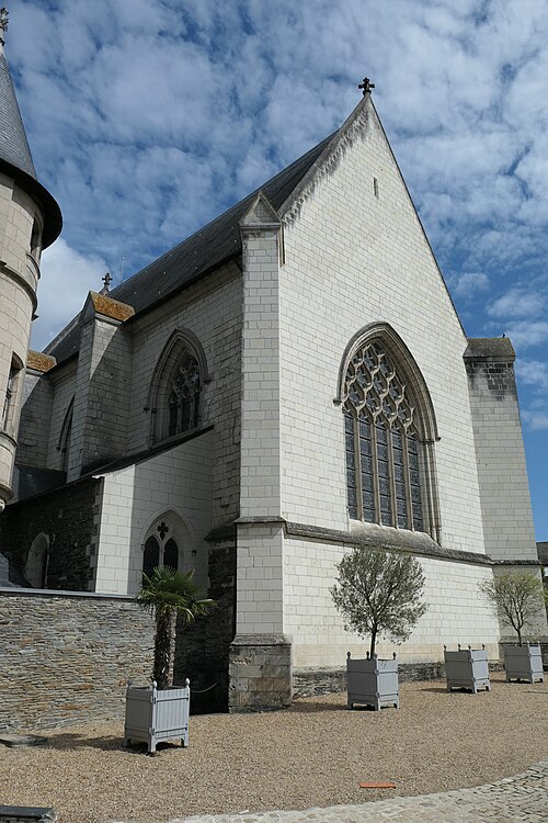 Le château d'Angers, aussi appelé château des ducs d'Anjou, domine la Maine depuis un promontoire de schiste et associe une forteresse royale du XIIIe siècle à des bâtiments résidentiels ducaux. Le site est occupé depuis le Mésolithique : des fouilles ont mis au jour un cairn néolithique ainsi que des traces d'occupations gauloise et romaine. Les parties les plus anciennes datent des Xe–XIe siècles, époque des comtes ingelgériens, et comprennent des élévations de la grande salle comtale. Après l'incendie du début du XIIe siècle, Henri II Plantagenêt reconstruit des éléments tels que la collégiale Saint‑Laud et des aménagements dans le mur ouest. Sous Louis IX, la forteresse actuelle est élevée à partir de 1230 : elle forme une enceinte d'environ 800 mètres ponctuée de dix‑sept tours. Ces tours, larges d'environ dix‑huit mètres et hautes d'une trentaine de mètres, sont bâties en alternance de schiste et de tuffeau. Les murailles sont renforcées à la fin du XVIe siècle par un épais rempart de terre et plusieurs tours sont arasées pour installer des plates‑formes d'artillerie et des canonnières. À partir du XIVe siècle, le château devient résidence ducale et connaît d'importantes transformations : aménagement de logis, rénovation de la grande salle, construction d'une chapelle et édification d'un châtelet au XVe siècle. Louis Ier d'Anjou commande vers 1373 la tenture de l'Apocalypse, œuvre monumentale qui est conservée dans la galerie dédiée depuis 1954. Louis II fait ériger le logis royal et la chapelle Saint‑Jean‑Baptiste au début du XVe siècle ; Yolande d'Aragon fait restaurer les défenses et y installe la relique de la Vraie Croix. René d'Anjou double le logis d'une galerie entre 1435 et 1453 ; son escalier porte sa devise et ouvre la demeure sur la cour seigneuriale. Le châtelet d'entrée, attribué à Guillaume Robin, complète l'ensemble autour de 1450–1456. Revenu sous autorité royale à la fin du XVe siècle, le château est ensuite adapté aux armes à feu au XVIe siècle par des architectes militaires et fait l'objet d'arasements partiels ordonnés en 1585, travaux partiellement menés puis interrompus. Aux XVIIe et XVIIIe siècles il sert de prison d'État, de garnison et d'hospice pour invalides ; au XIXe et au début du XXe siècle l'armée y installe prisons, arsenaux et ateliers. Pendant la Seconde Guerre mondiale le site, occupé par les Allemands, sert de dépôt de munitions et subit des bombardements en mai 1944 qui endommagent la chapelle et le logis royal. Après 1945 l'architecte Bernard Vitry restaure le monument et réalise la galerie destinée à présenter la tenture de l'Apocalypse. Des fouilles préventives conduites entre 1992 et 2003 ont mis en lumière les vestiges du palais comtal et des occupations anciennes, enrichissant la connaissance du site. Un incendie en janvier 2009 détruit la toiture du logis royal sans endommager la tenture ; la restauration du logis se termine en 2014. Le plan médiéval reste lisible : enceinte et tours, porte des Champs et porte de la Ville, fossés aujourd'hui transformés en jardins et cours intérieures séparant basse‑cour et cour seigneuriale. La grande salle comtale conserve des aménagements successifs depuis le Xe siècle, et les chapelles témoignent des usages religieux du château à travers les siècles. La galerie du roi René, les voûtes et les clefs armoriées, ainsi que le châtelet et le logis du gouverneur, illustrent la superposition des fonctions militaire et résidentielle. Aujourd'hui le château abrite la tenture de l'Apocalypse, des espaces d'accueil et d'exposition restaurés, et fait partie des monuments gérés par le Centre des monuments nationaux.