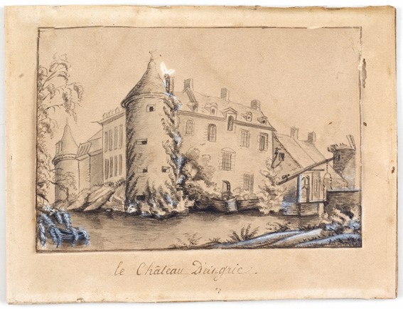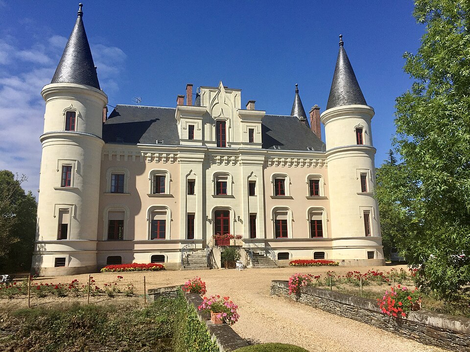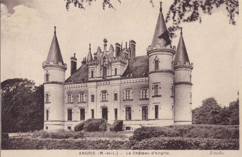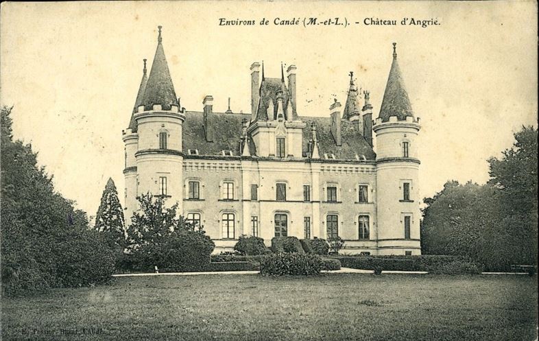 Le château d'Angrie, situé à Angrie (Maine-et-Loire), est considéré comme le premier château néogothique d'Anjou. La seigneurie est mentionnée dès le XIIe siècle et relevait féodalement de la baronnie de Candé ; au XVIe siècle elle était titrée châtellenie et possédait les droits de haute, moyenne et basse justice. La terre appartint d'abord à la famille d'Angrie, puis, du XIIIe au XVIIIe siècle, à la maison d'Andigné, qui modernisa le château au XVIe siècle. En 1727 la seigneurie fut vendue à Jacques-Urbain Turpin, baron de Crissé ; par la suite le domaine passa aux Turpin de Crissé, puis aux Lostanges, qui firent reconstruire le château dans les années 1840. La reconstruction fut confiée à l'architecte René Hodé, installé à Angers. Le bâtiment présente un vaste plan rectangulaire flanqué de quatre tours rondes couronnées de machicoulis et surmontées de toits élancés. Il s'élève presque au centre d'anciennes douves larges de douze mètres, traversées au sud par un pont de deux arches, dernier vestige de l'ancien pont-levis. Les bases de quatre vieilles tours subsistent, plongeant dans l'eau des fossés creusés en plein roc, leurs hauteurs ayant été arasées. La décoration intérieure est remarquable : les décors peints en trompe-l'œil des salles de réception et des quatre pièces principales du rez-de-chaussée furent confiés au peintre Achille Léger-Larbouilhat. Ce style néogothique inspira de nombreux châteaux de la région dans la seconde moitié du XIXe siècle. Le logis de la ferme, qui porte la date et le nom du maçon Chevillard, est daté de 1867. Des travaux menés vers 1990 ont modifié légèrement l'édifice et entraîné la disparition des faux créneaux des tourelles ainsi que des édicules encadrant le pinacle de la travée centrale sud. Le domaine comprenait, à la fin du XIXe siècle, au moins dix fermes regroupées autour du château et du village, parmi lesquelles la Charmille (1896), le Bois (1873), la Ricaudière, Pallage, la Rochette, la Pinaudais, la Prévôté, la Dauderie et la Basse-Cour. Par descendance et transmission, le château passa ensuite aux Hersart du Buron puis aux Kerautem, qui le possèdent encore. L'édifice a été inscrit au titre des monuments historiques en 2008.