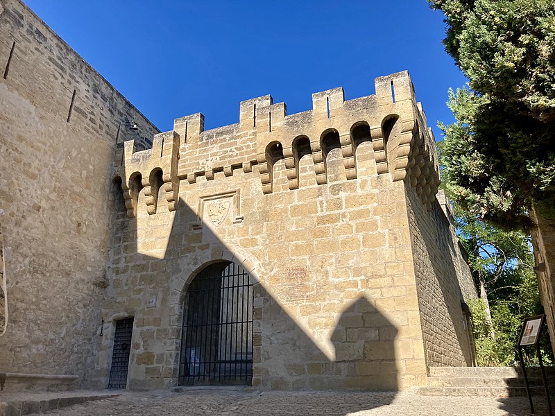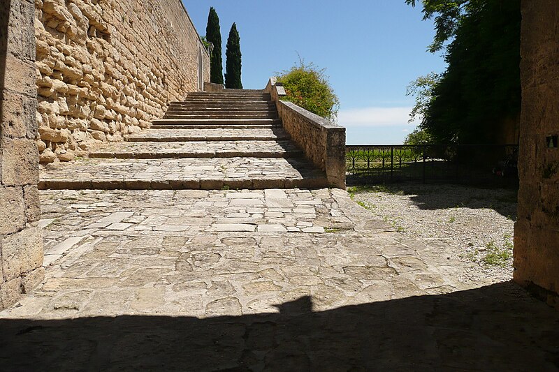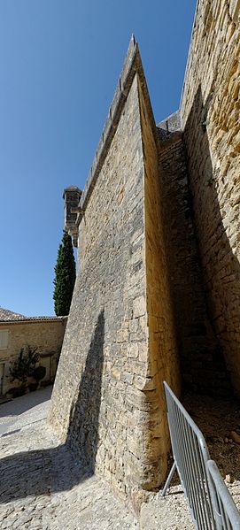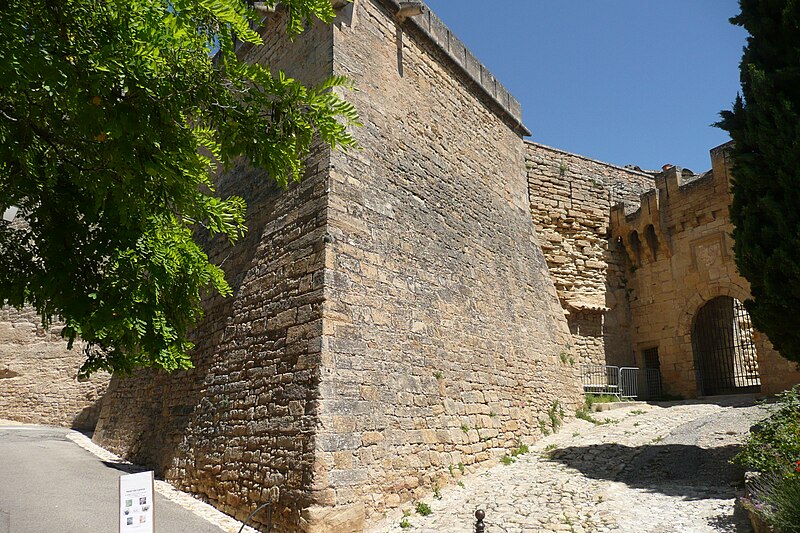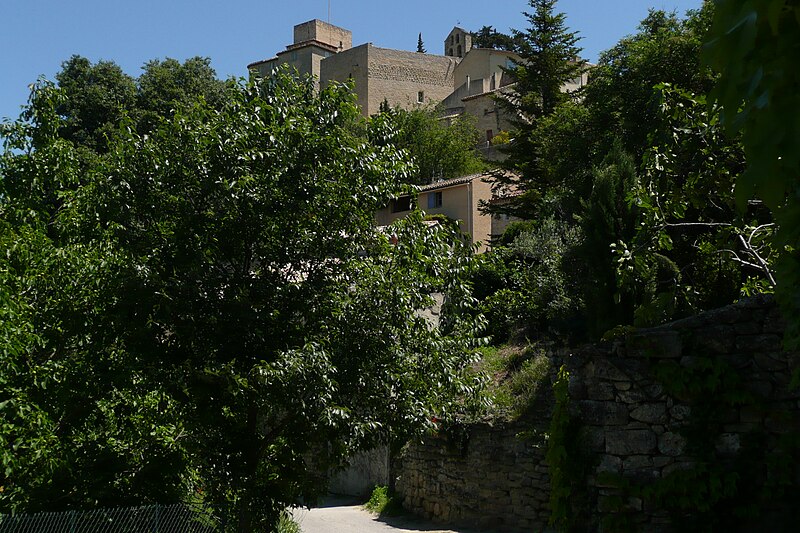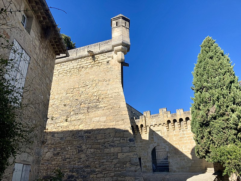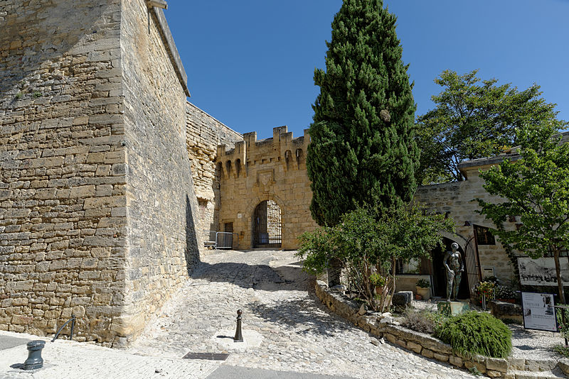Le château d'Ansouis, situé sur un piton rocheux dominant le village et la vallée d'Aigues dans le Vaucluse, voit ses origines remonter au Xe siècle ; l'édifice a été édifié et progressivement agrandi à partir du début du XIIIe siècle. En 1383, il se composait d'un donjon rectangulaire de trois étages, de quatre corps de logis, d'un corps annexe et d'une chapelle, le tout enfermé dans une enceinte fortifiée étroite. Le donjon fut partiellement détruit au XVe siècle ou au début du XVIe siècle, et l'enceinte disparut au cours du XVIe siècle, remplacée par la première fortification du village. Le grand corps de logis sud fut édifié en plusieurs campagnes, la première en 1614 par les maçons Jean Brun et Achille Leaumont, une seconde en 1633 par Daniel Sadalian, et son achèvement intervint après 1641 ; J.J. Gloton attribue le dessin de l'élévation antérieure à Jean Lombard. Des modifications des façades, des décors intérieurs et des jardins ont été réalisées au XVIIIe siècle, puis quelques transformations eurent lieu après le rachat en 1836 par le duc de Sabran, notamment la couverture d'une cour, la construction d'une nouvelle chapelle aujourd'hui détruite, l'édification du portail d'entrée et le réaménagement des jardins. Le site appartint successivement aux familles de Forcalquier puis de Sabran ; il a été classé monument historique par arrêté du 10 mai 1948 à la demande de la duchesse de Sabran-Pontevès. À la suite d'un différend familial datant de 1973, le château fut mis en vente à la bougie le 29 octobre 2007, avec une surenchère enregistrée de Pierre Cardin, puis acquis par les propriétaires actuels lors d'une seconde vente en janvier 2008. Sur le plan architectural, la forteresse médiévale, munie de tourelles, remparts et créneaux, a été transformée en château de plaisance à la fin des guerres de Religion, de sorte que l'édifice présente des éléments médiévaux et des aménagements de la Renaissance. La partie médiévale comprend l'entrée et l'escalier d'honneur, la salle du puits, la prison, la cuisine avec offices et celliers, la salle d'armes, le donjon et la chapelle ; le hall d'entrée et l'escalier forment un espace d'environ 40 m² donnant sur l'esplanade, le logis des gardiens, à droite, constitue un appartement d'un peu moins de 90 m² avec hall, cuisine voûtée, trois chambres et sanitaires, et, à gauche, une salle voûtée d'environ 40 m² s'ouvre sur l'esplanade ; plusieurs pièces en entresol abritent cave(s), salle d'armes, la salle du puits, la chapelle et la prison. Le logis seigneurial de style Renaissance comprend des appartements, des salons et des salles à manger d'apparat. Les jardins, aménagés sur les terrasses de l'ancienne forteresse et élaborés à la française, comportent un jardin principal dit « jardin de la duchesse » situé face à sa chambre et mesurant 227 m². La documentation photographique répertorie de nombreux éléments remarquables : le portail médiéval d'entrée, le blason d'entrée, l'accès mêlant éléments du XVIIe siècle et vestiges médiévaux, des renfoncements défensifs et canonnières, les montées vers le logis et les jardins, ainsi que diverses vues du rempart, de l'église attenante et du rocher du château.