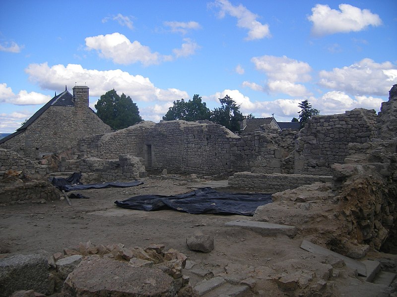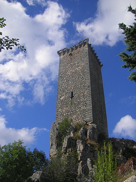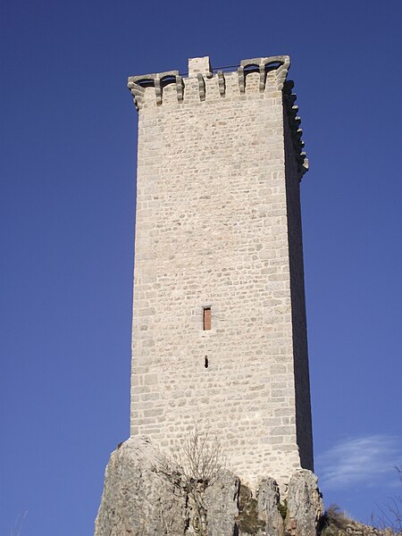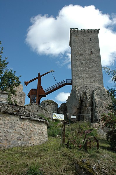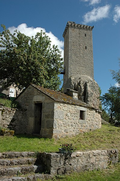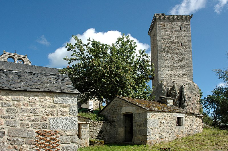 L'ancien château d'Apcher, situé à Prunières en Lozère, fut le siège des barons puis des marquis d'Apchier, l'une des huit baronnies du Gévaudan ; il a été progressivement abandonné à partir du XVIIe siècle et subsiste aujourd'hui en ruine, seul le donjon étant encore entier. L'un des premiers seigneurs, Garin de Châteauneuf, troubadour renommé de la fin du XIIe siècle, est réputé avoir créé une nouvelle forme poétique, le « descors ». Le site apparaît dans les sources documentaires de la fin du XIIe et du début du XIIIe siècle : il est évoqué en 1180 et cité en 1233. Le château était le chef-lieu d'une baronnie qui dominait le nord de l'Aubrac gévaudanais, entourée par les baronnies de Peyre et de Mercœur ; le bâtiment principal se trouvait à l'est de ce territoire. L'ensemble castral comprenait un donjon, des logis disposés autour d'une cour, des dépendances, un puits-citerne et une chapelle, et de nombreux vestiges de ces constructions subsistent. La tour carrée, qui appartient à l'enceinte intérieure, cohabitait avec trois tours circulaires aujourd'hui réduites à leur base ; elle est bâtie en granite à appareil moyen équarri, sur plan carré, et couronnée de mâchicoulis. La porte d'entrée, située à l'est, s'ouvre à quelques mètres au-dessus du sol. La chapelle incluse dans l'enceinte présente une façade principale surmontée d'un clocher-peigne à deux arcatures et se termine par une abside pentagonale ; dans l'élévation supérieure de cette abside, chaque côté du pentagone porte une arcature reposant sur une colonnette à chapiteau. À l'intérieur, le chœur est surélevé par rapport à la nef. À l'intérieur du chœur a été dégagée la base semi-circulaire d'une église primitive qui pourrait remonter au XIe siècle. L'occupation du site remonte probablement au Xe siècle, bien qu'aucune trace matérielle n'ait été datée antérieurement au XIIIe. Un boulin d'échafaudage retrouvé dans l'épaisseur du mur du donjon a permis de dater cette construction de 1374. D'après Daucet, la chapelle aurait été fondée par Guérin III de Châteauneuf à son retour de la septième croisade, au milieu du XIIIe siècle ; le chœur actuel et une partie de la nef seraient issus de cette période. Les bâtiments témoignent de nombreuses reprises : la porte d'entrée située au sud pourrait dater du XVIe siècle, tandis que l'élévation ouest et le clocher-mur relèvent du XVIIe ou du XVIIIe siècle. La tour du château et la chapelle ont été classées au titre des monuments historiques le 18 mai 1983. Selon Albert Dauzat et Charles Rostaing, le toponyme Apcher dériverait du nom latin Appius associé au suffixe -arium, apparenté à des formes voisines comme Apchon et Apchat.